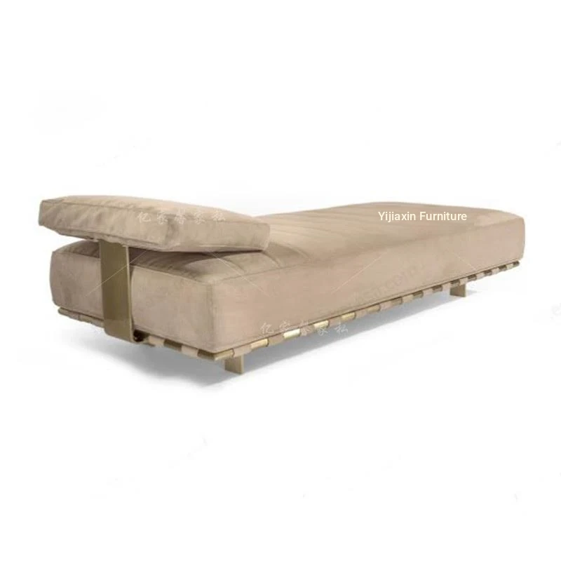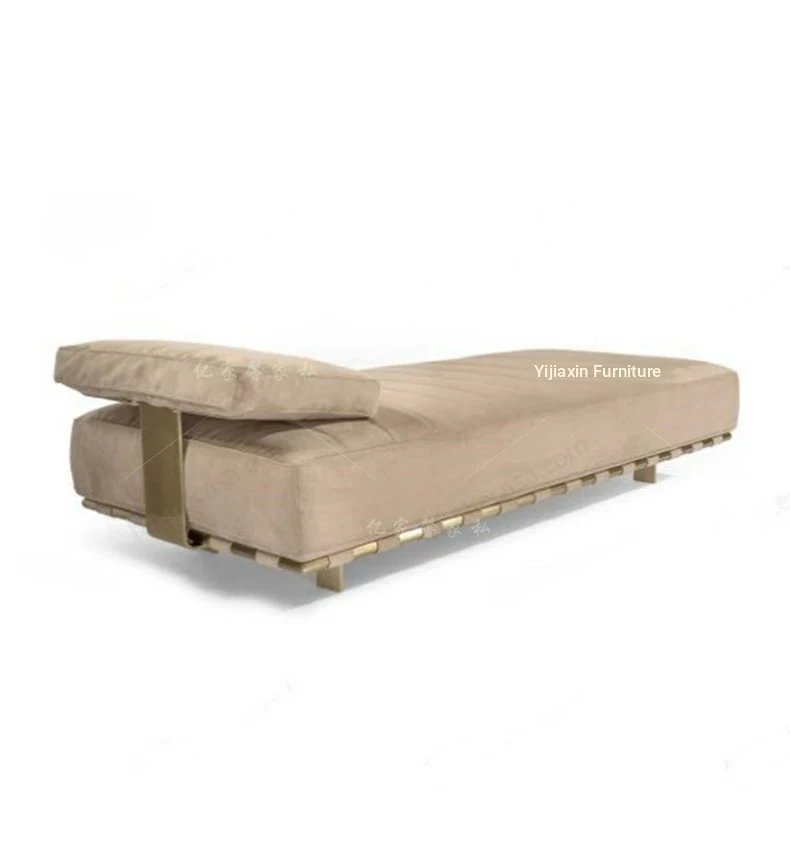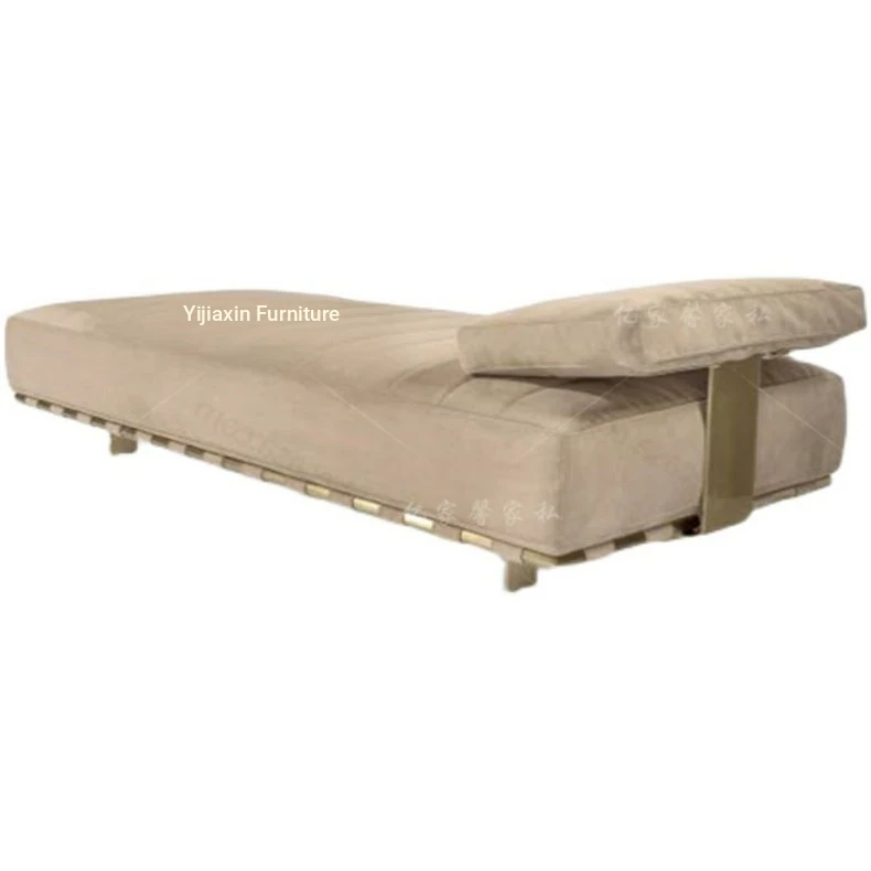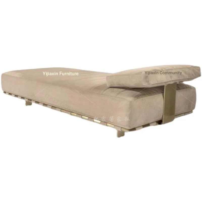 Nordic Minimalist Stainless Steel Weaved Fabric Chaise Lounge - Luxurious Outdoor Sofa for Balcony Relaxation, Perfect for Modern Living Spaces