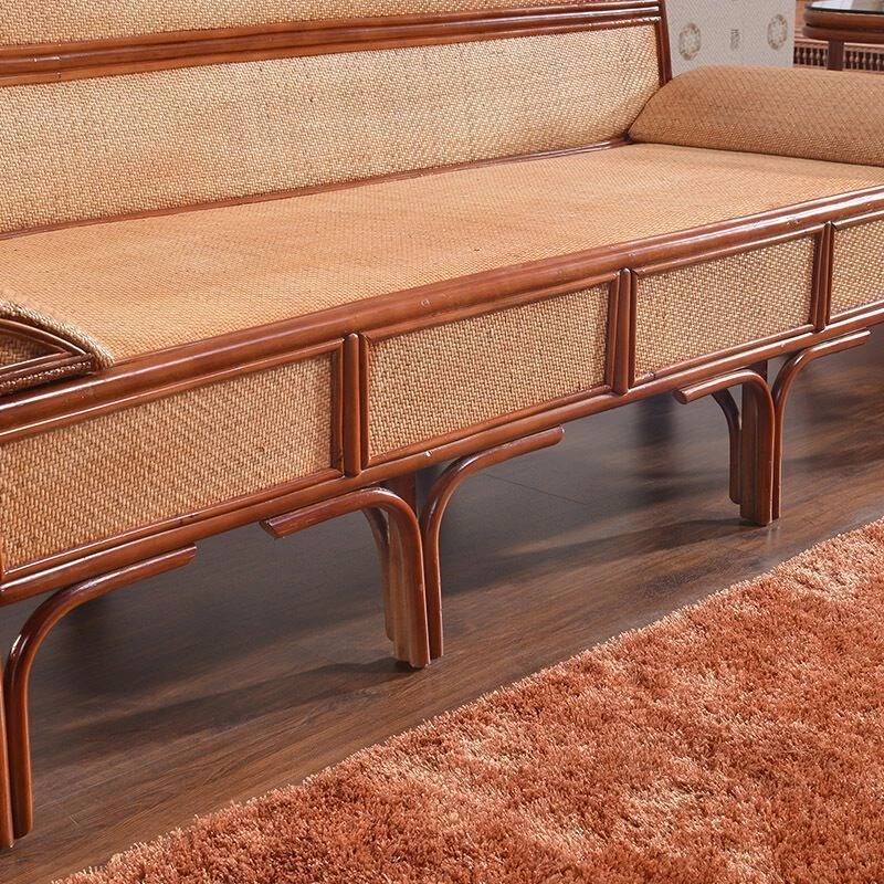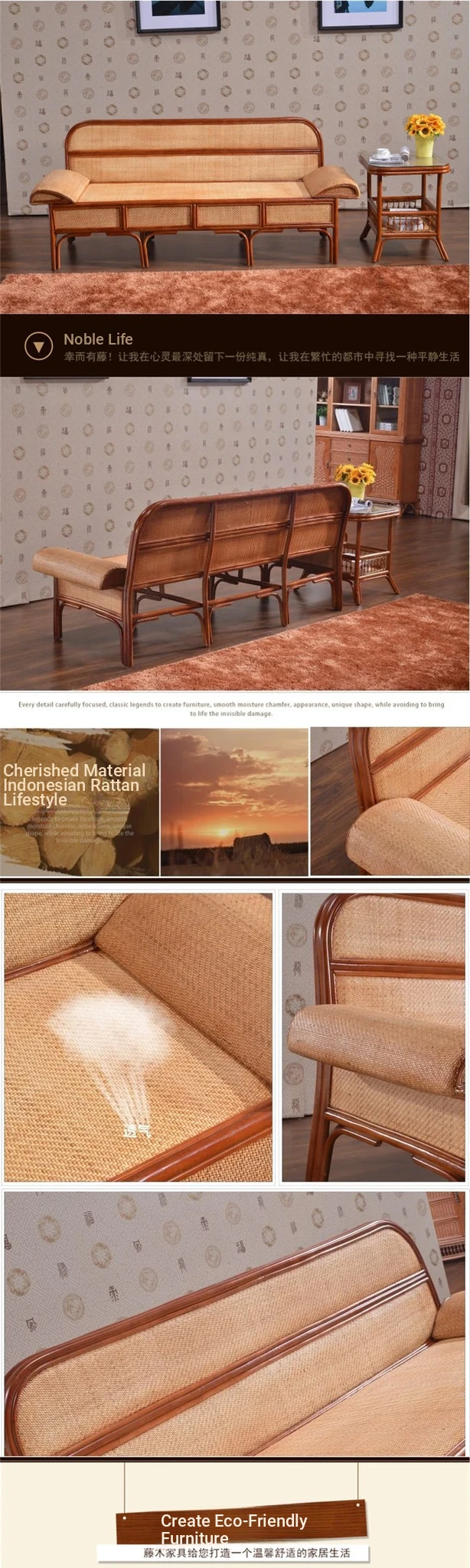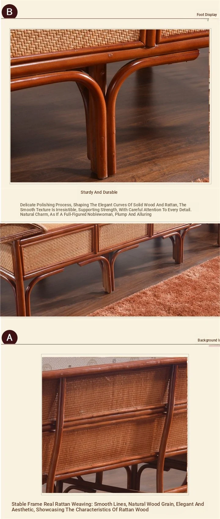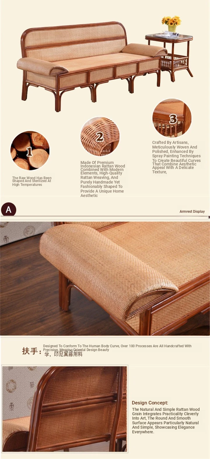 Rattan Wicker Chaise Lounge Sofa - Elegant Chinese Style Three-Seat Daybed, Perfect for Relaxation and Leisure, Ideal for Your Living Room or Outdoor Space.