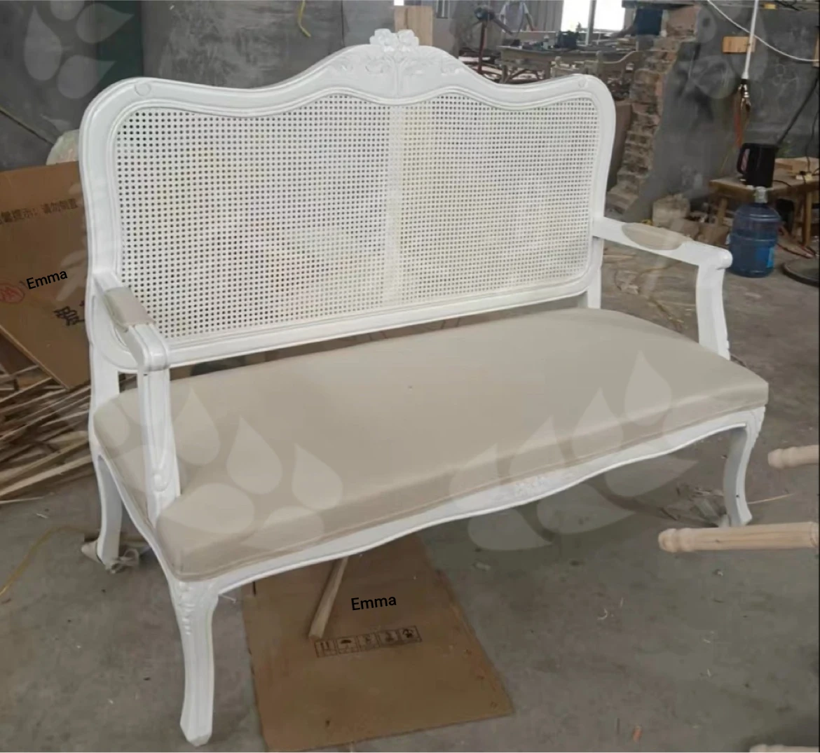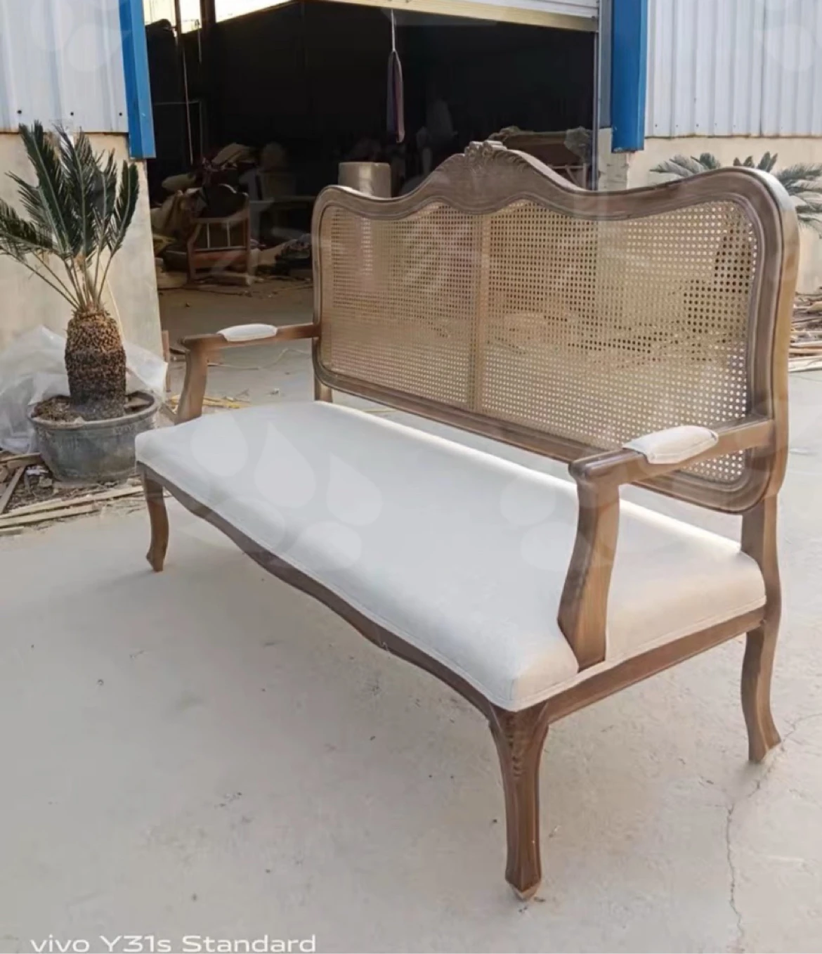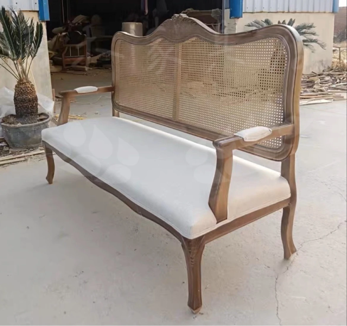 Rustic American Solid Wood Carved French-Style Rattan Upholstered Gold Antique Dual & Triple Sofa - Perfect for Photography Studios and Boutique Hotels