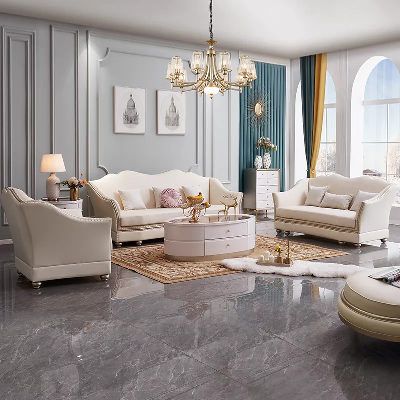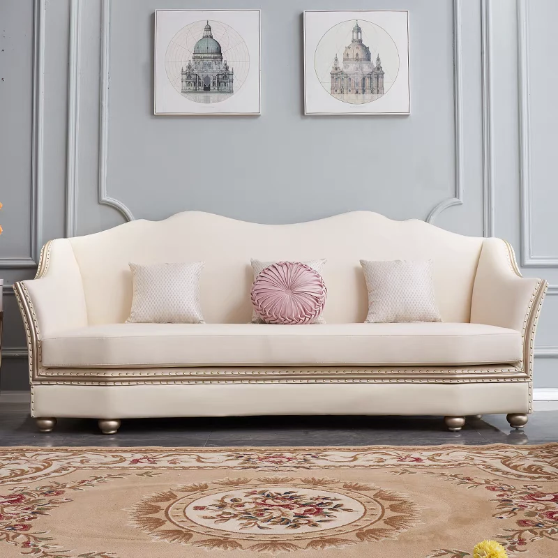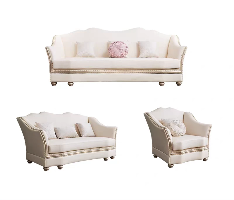 Stylish American Light Luxury Solid Wood Sofa Set - Modern French Minimalist 3-Seater for Small Spaces, Perfect for European Living Rooms, Elegant Solid Wood Furniture