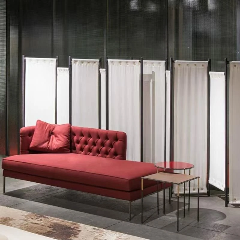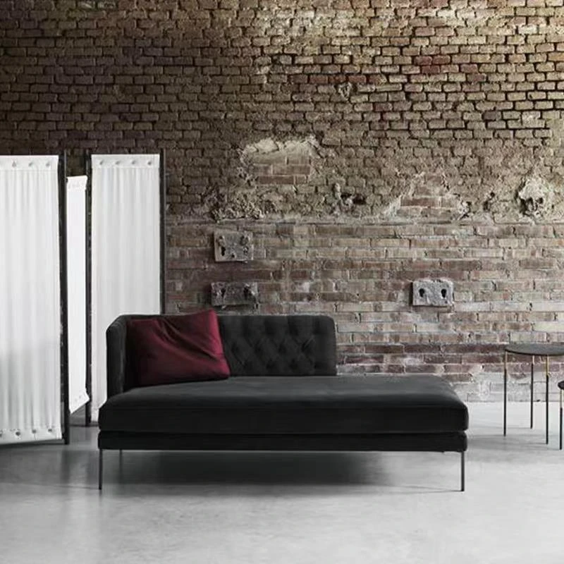 Stylish Modern Fabric Chaise Lounge - Italian Minimalist Design for Small Spaces, Perfect for Balcony, Outdoor Relaxation, or as a Bed End Bench in Your Master Bedroom.