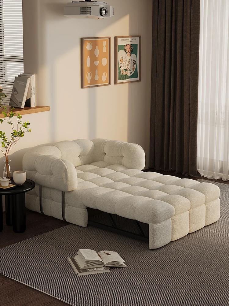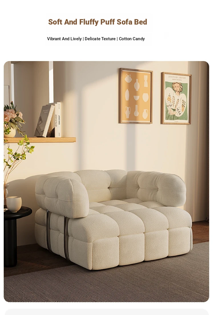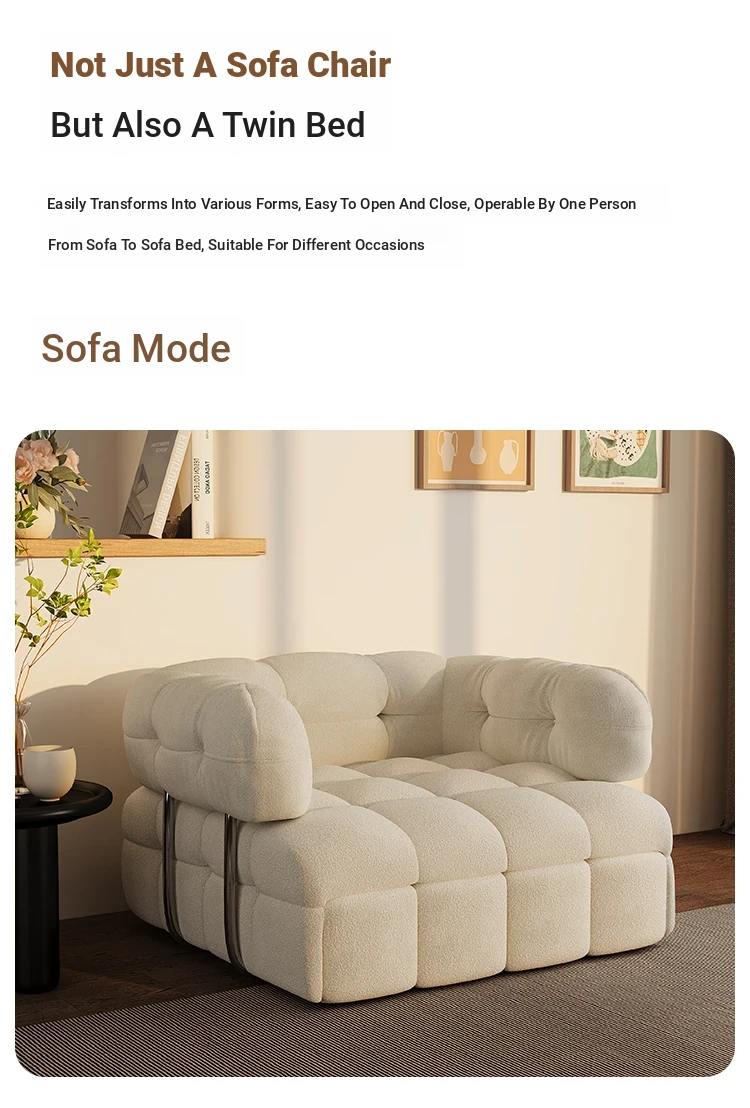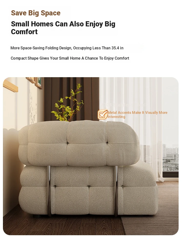 Versatile Single Foldable Sofa Bed - Perfect for Small Spaces, Ideal for Napping or Relaxing in Your Living Room or Balcony, Cozy Lambswool Design for Ultimate Comfort. Perfect for Studio Apartments!