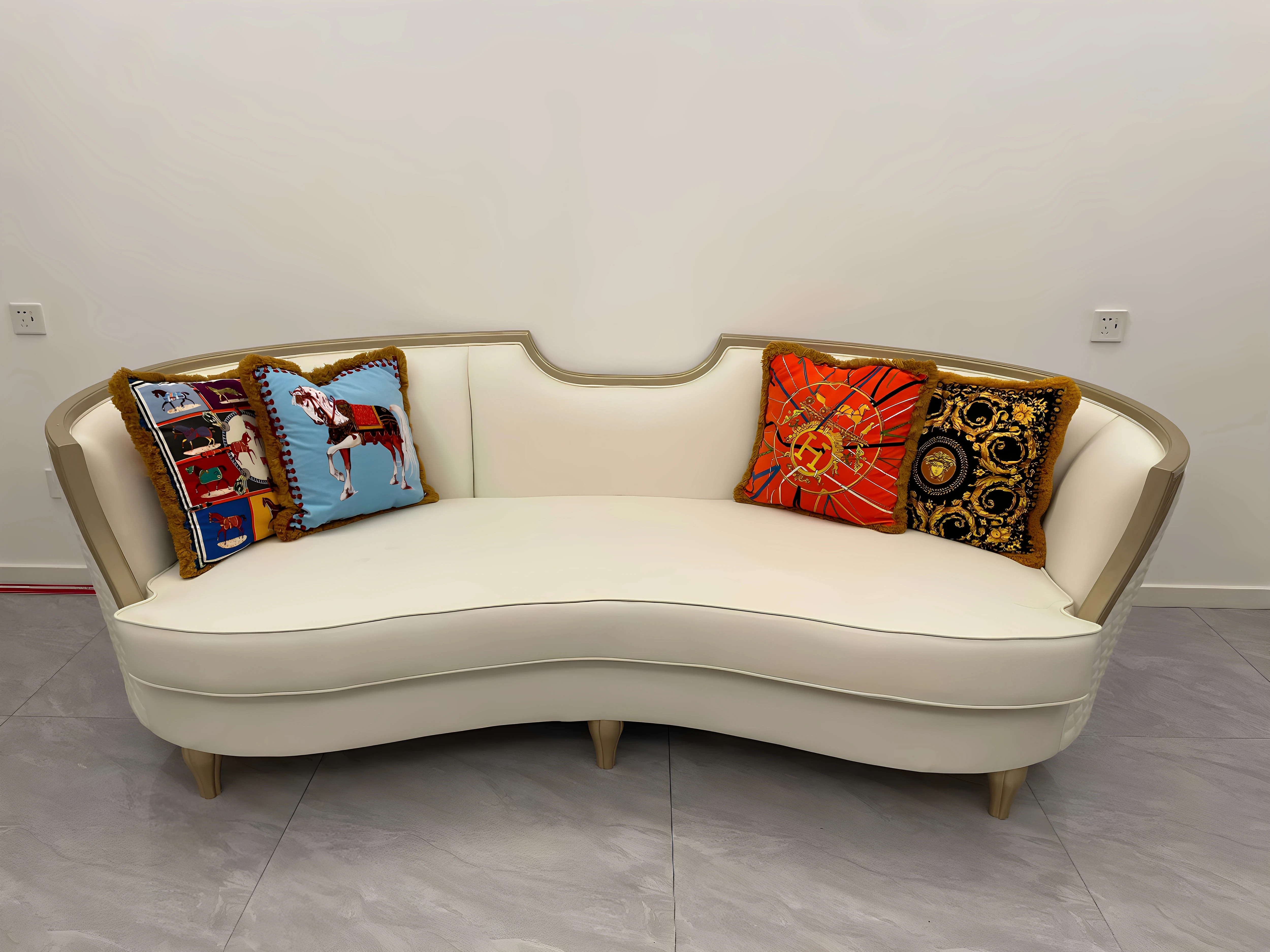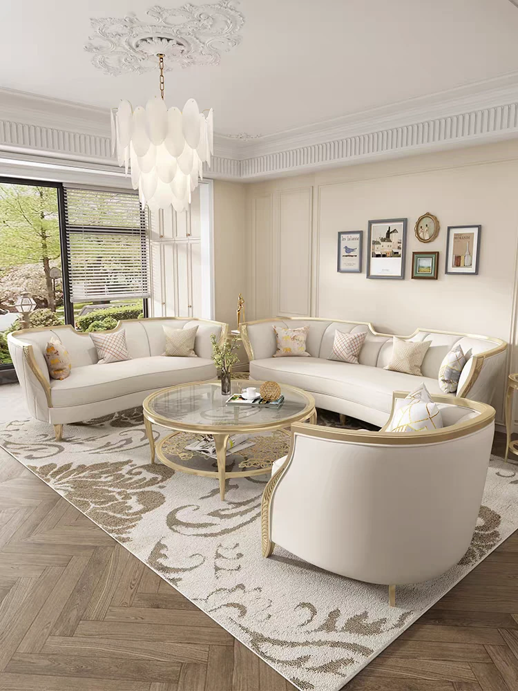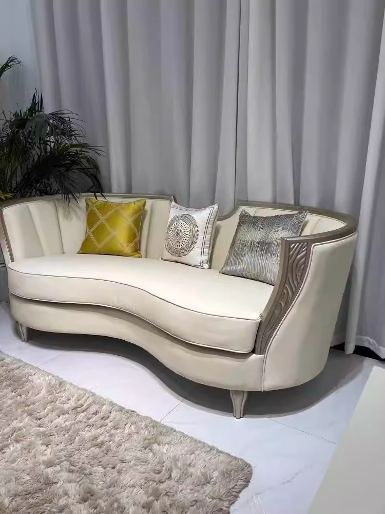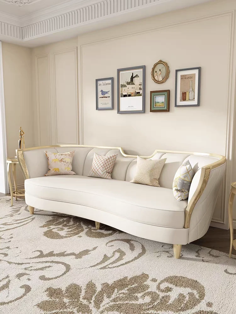 アメリカンスタイルの無垢材ソファ フレンチラグジュアリー リビングルーム用 シンプルなアーチ型ソファ メイク・アデラ ソファ クリーム風味の優雅さを演出!快適なひとときをお届けします。