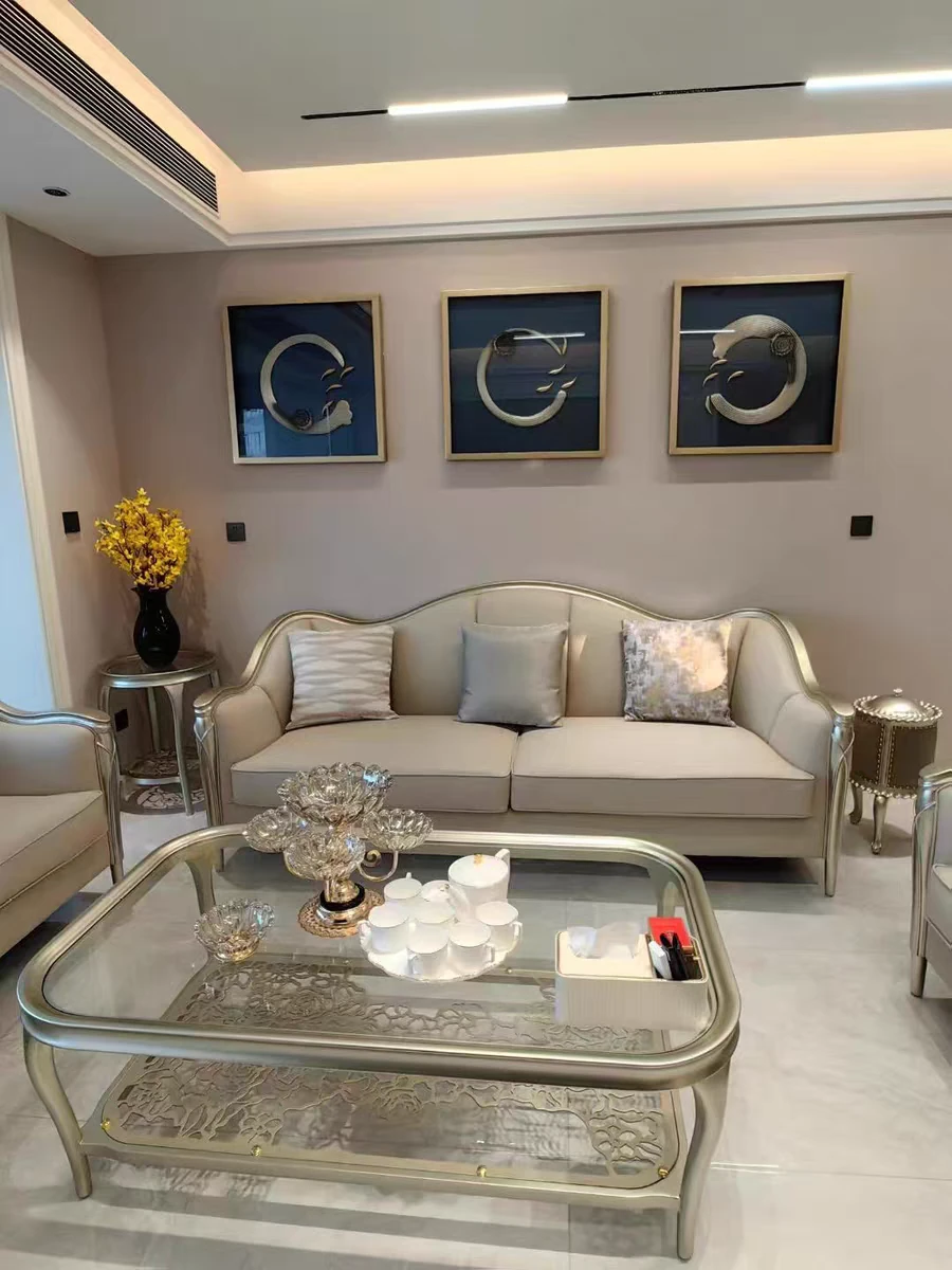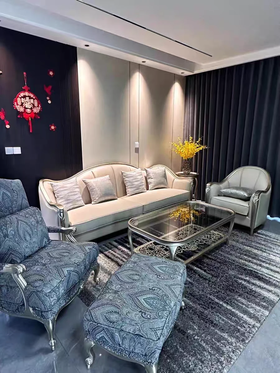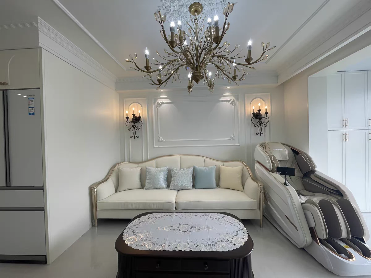 アメリカンスタイルの軽奢ソファ|シンプルな無垢材と布地のコンビネーション|現代的な123型|フレンチクリーム風のリビングルーム向け|小さなスペースにもぴったりな家具!
