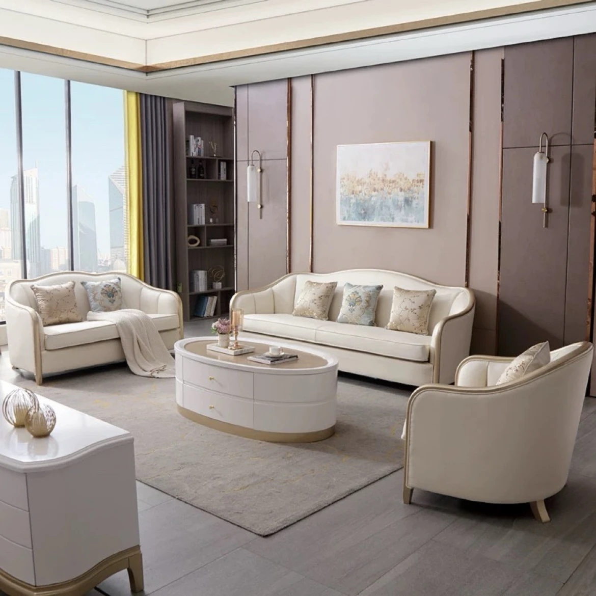 アメリカンスタイルのラグジュアリー本革ソファ|大中小のリビングにぴったりな123コンビネーション|モダンでシンプルな高級ヨーロッパ風デザイン