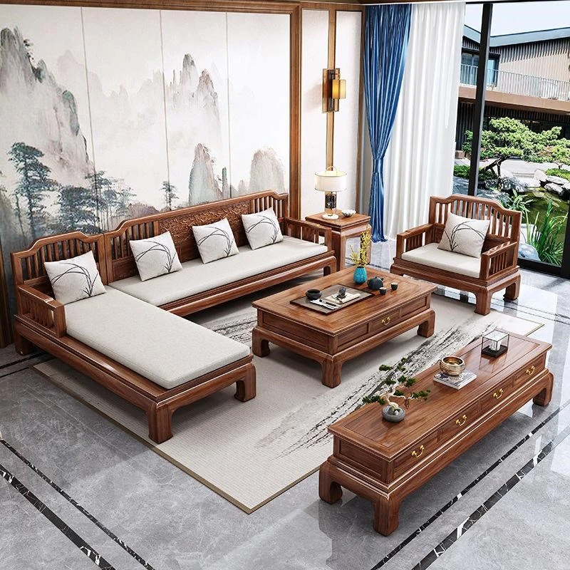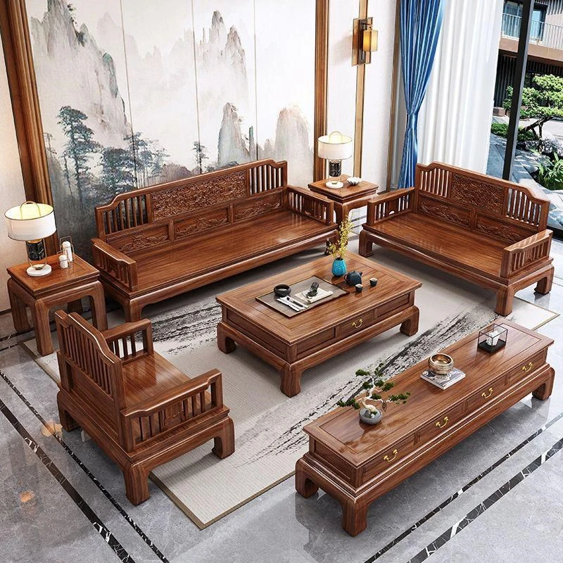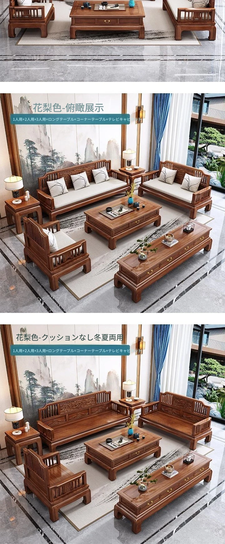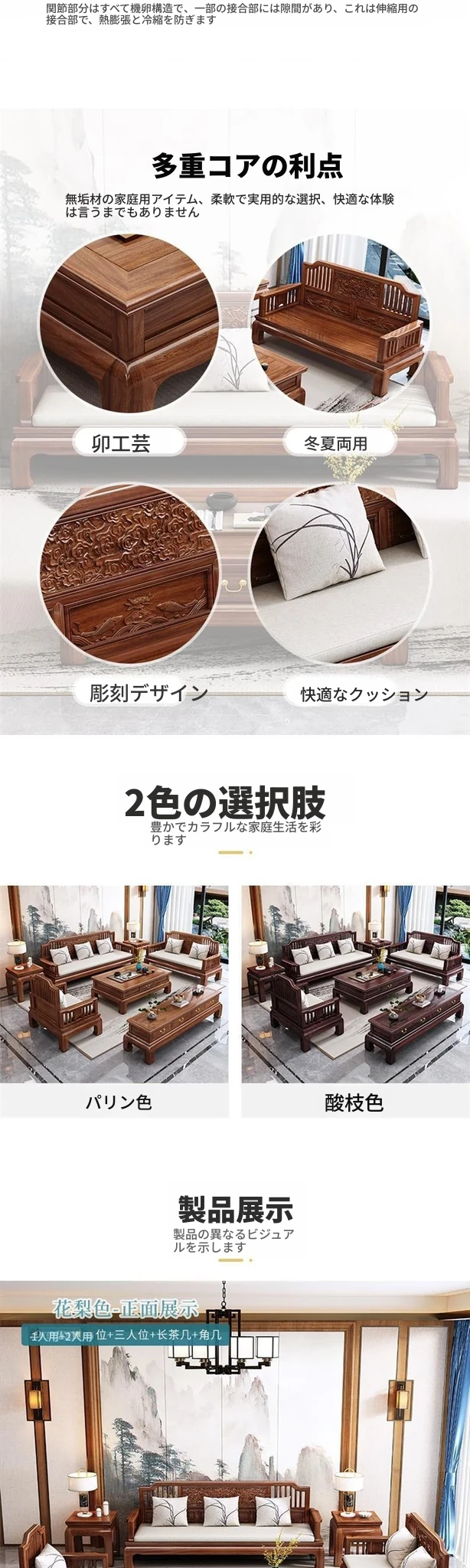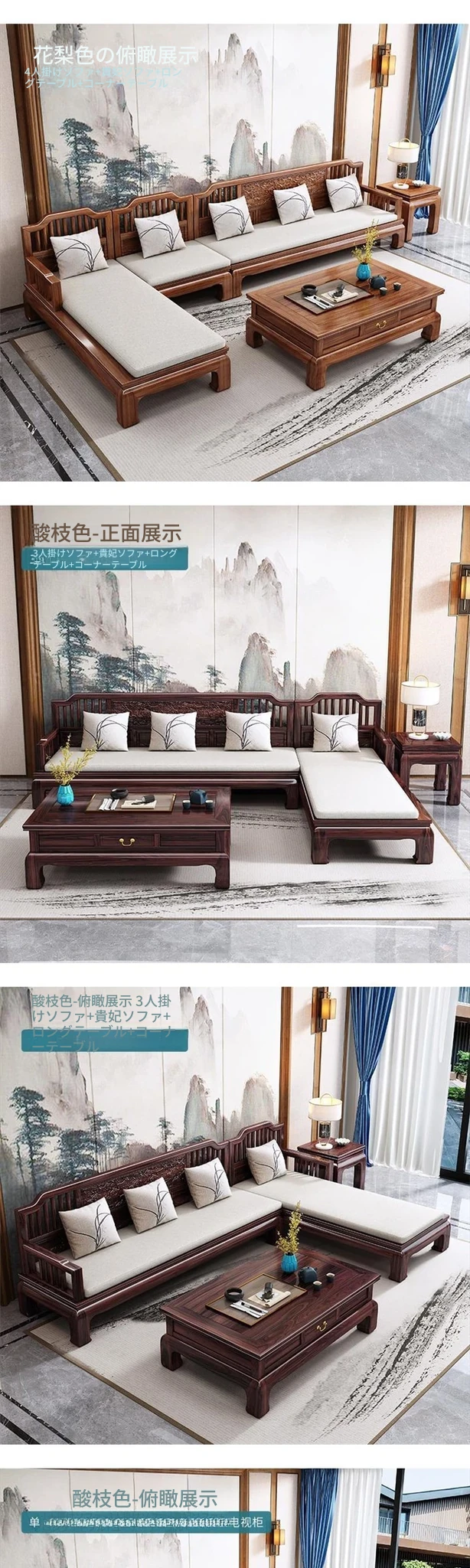 冬夏両用!豪華な全実木製金花梨木ソファ - 中華古典彫刻デザイン、菠蘿格スタイルの貴妃紅木家具で、あなたのリビングを優雅に彩ります!