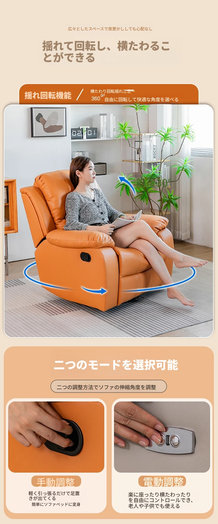 電動多機能一人用ソファチェア|リビングに最適な宇宙エグゼクティブソファ|寝る・リクライニング・マッサージ機能付きの怠け者用ロッキングチェア!快適なひとときをお届けします。