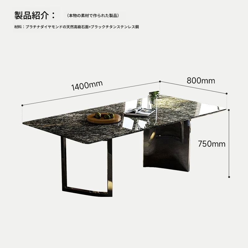 【天然プラチナダイヤモンド豪華石天板】ダイニングテーブル1.4m