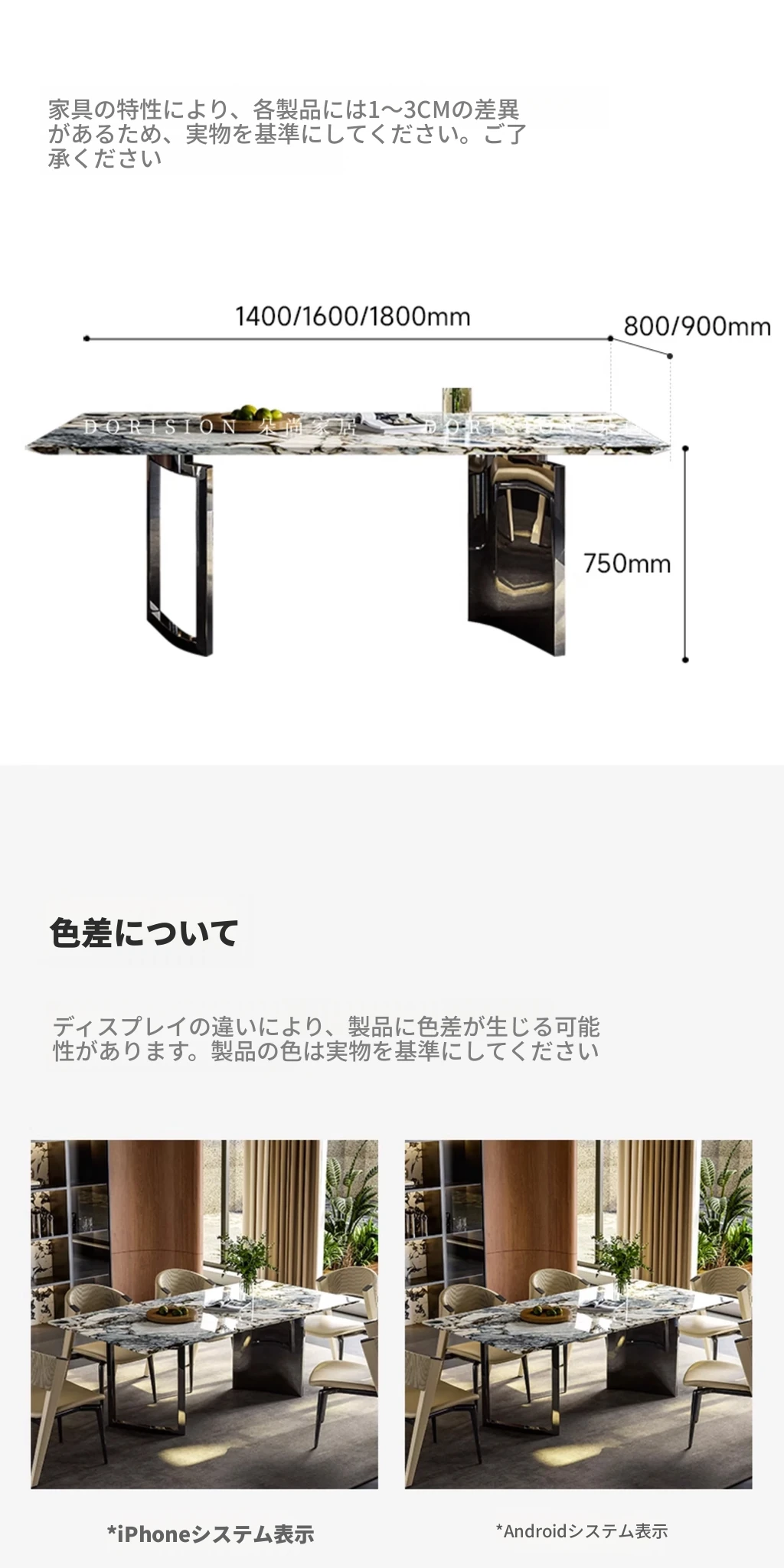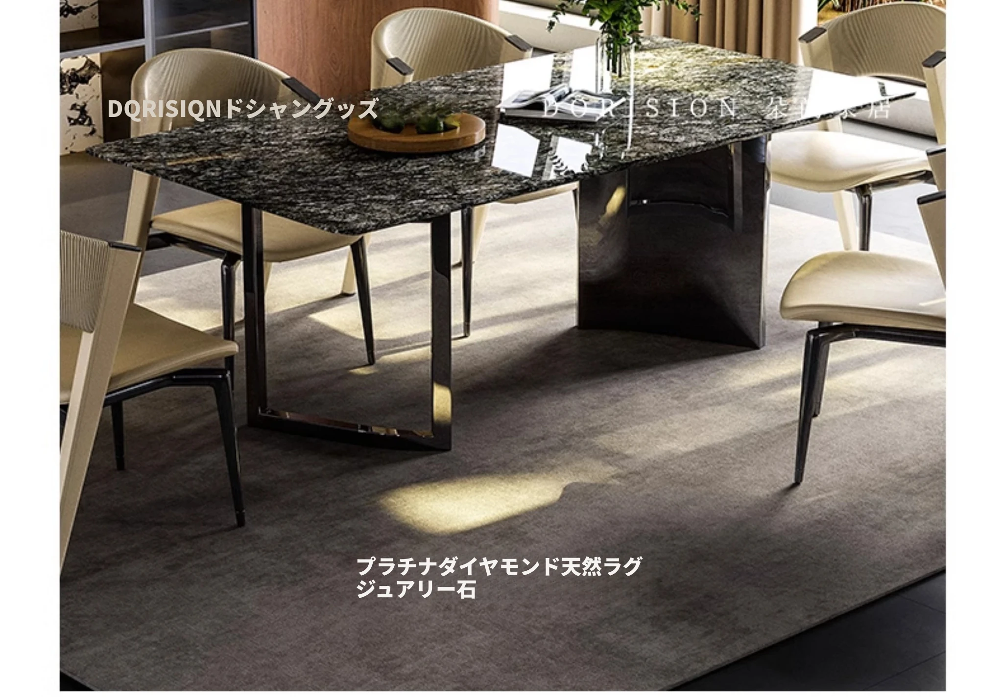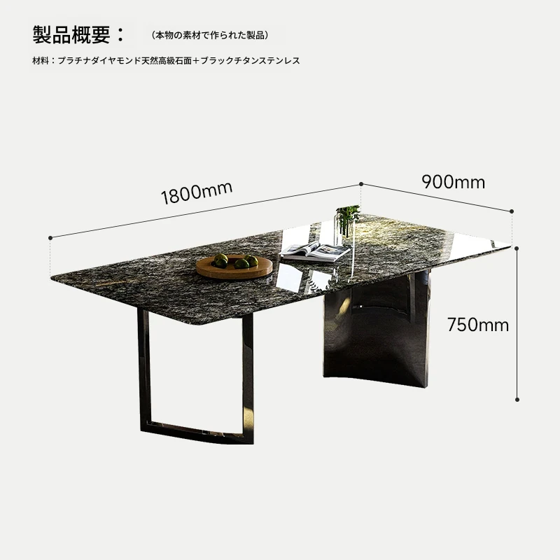 【天然プラチナダイヤモンド豪華石天板】ダイニングテーブル1.8m