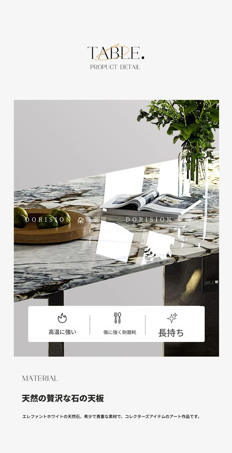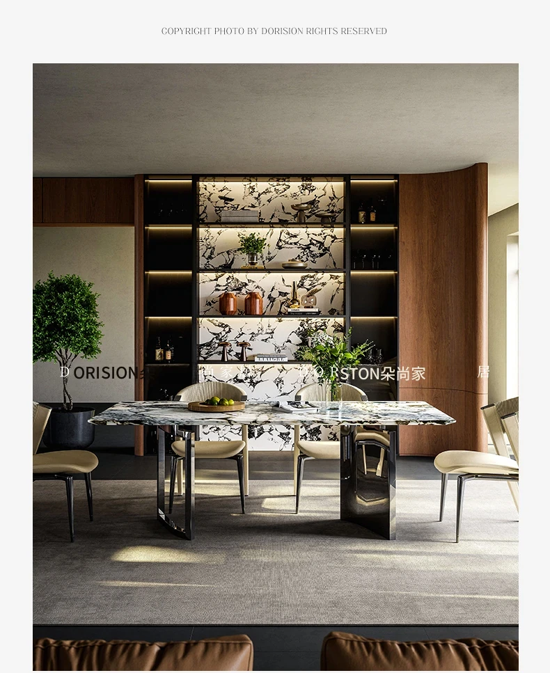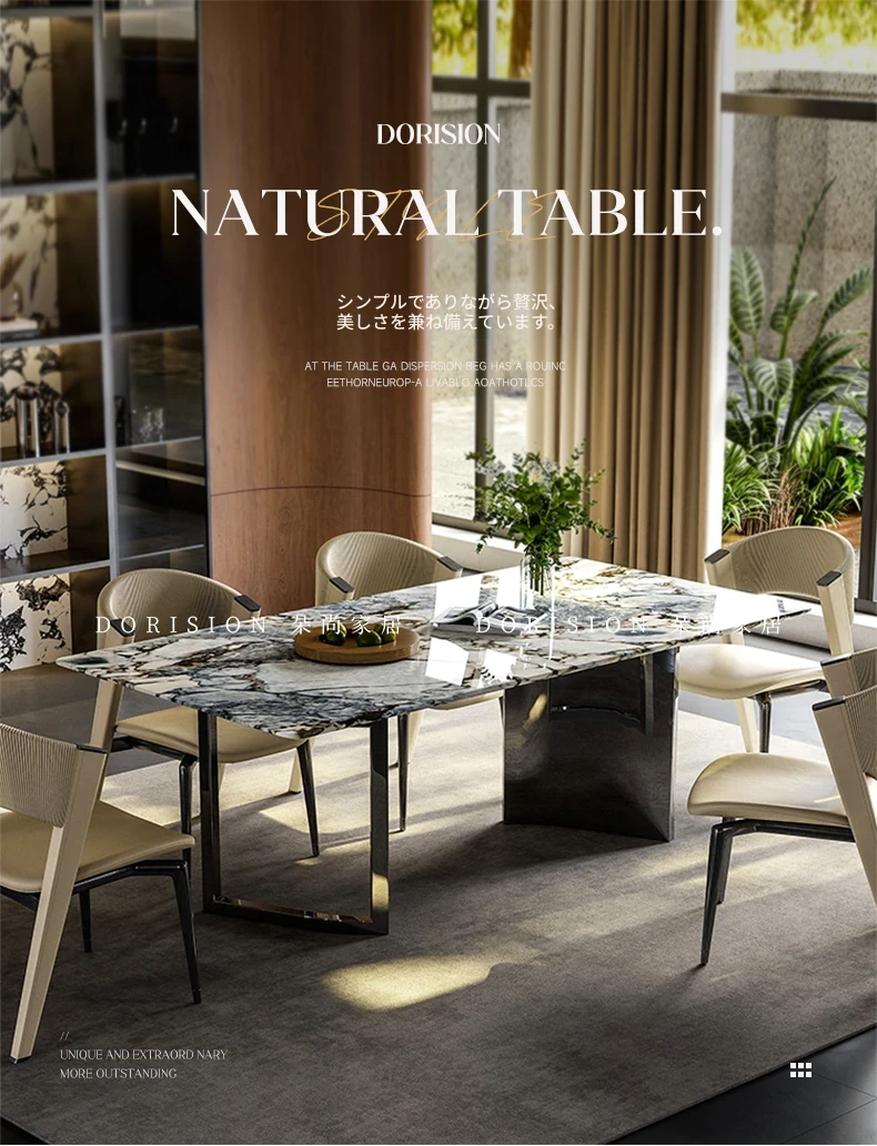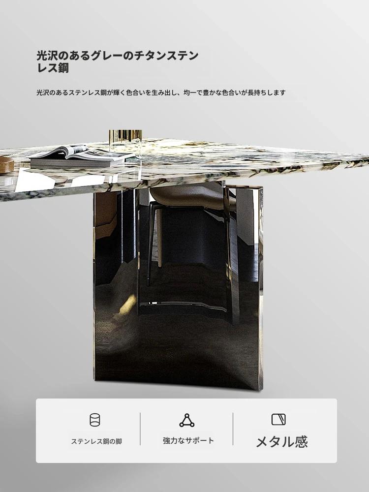 洗練されたモダンデザインの軽奢食卓セット!高品質ステンレス製の長方形ダイニングテーブルと椅子。イタリアンミニマリズムを取り入れた大理石の美しさが、あなたの食卓を格上げします。