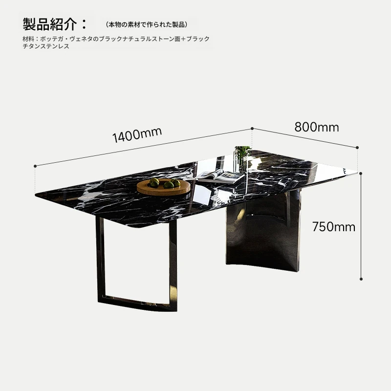 【天然ブルガリブラック豪華石天板】ダイニングテーブル1.4m