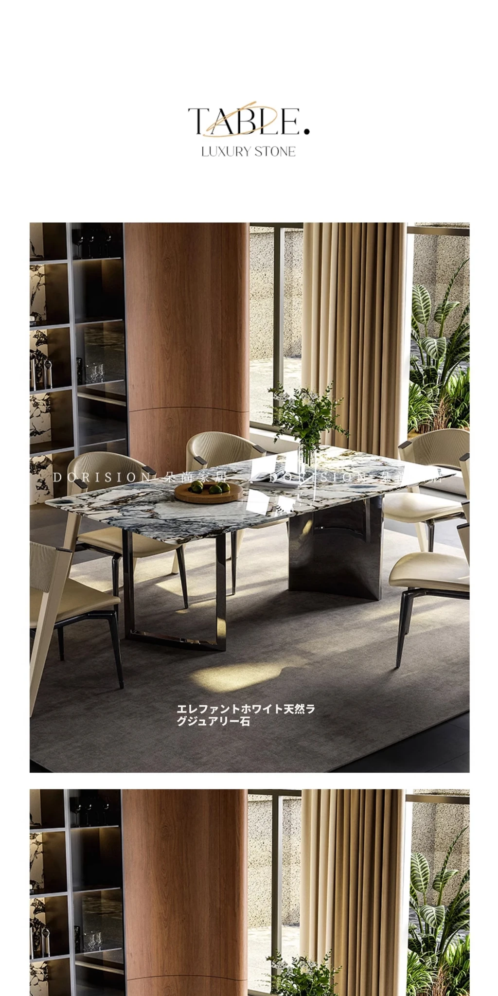 【天然エレファントホワイト豪華石天板/メイン画像色】ダイニングテーブル1.8m