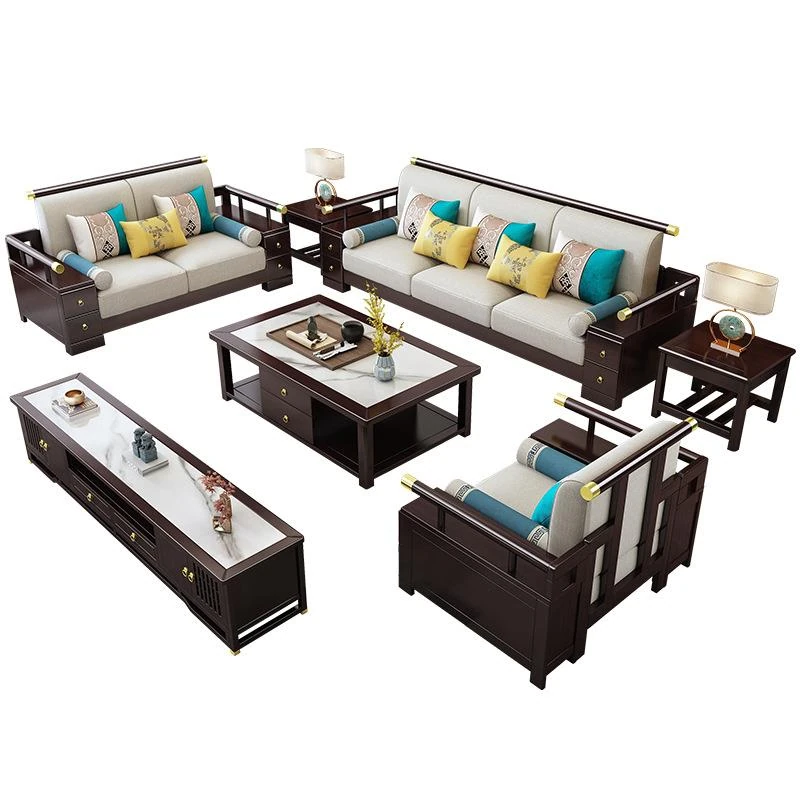 5人用ソファ+貴妃+コーヒーテーブル+角テーブル*2【35Dウレタン+通気性のある麻】