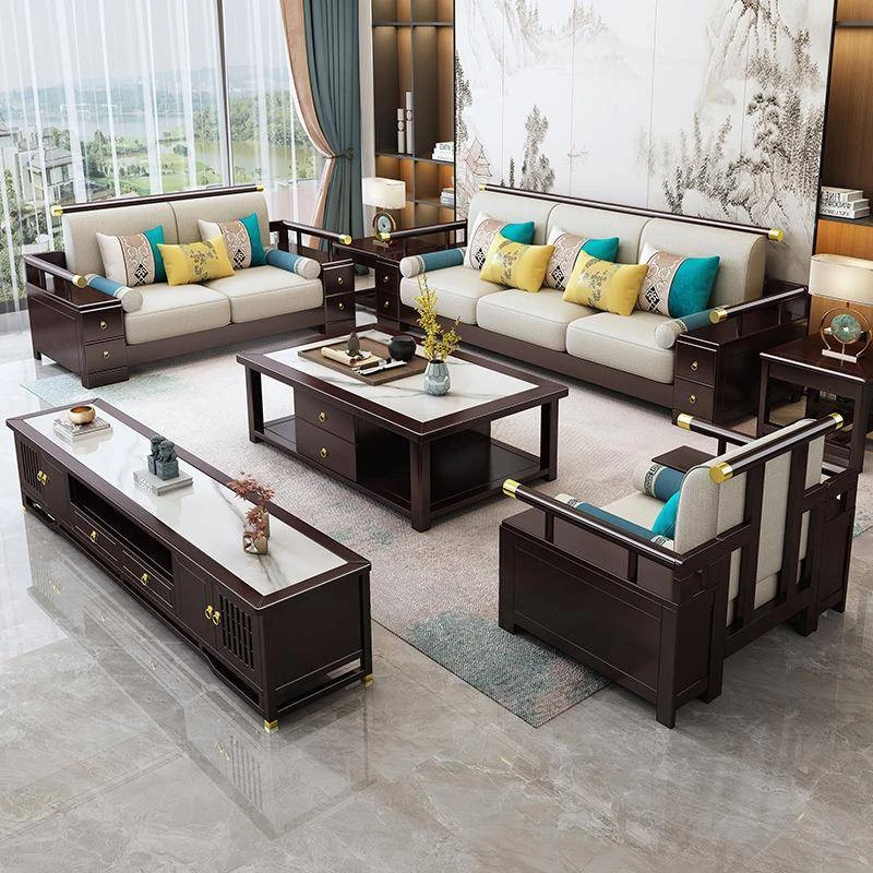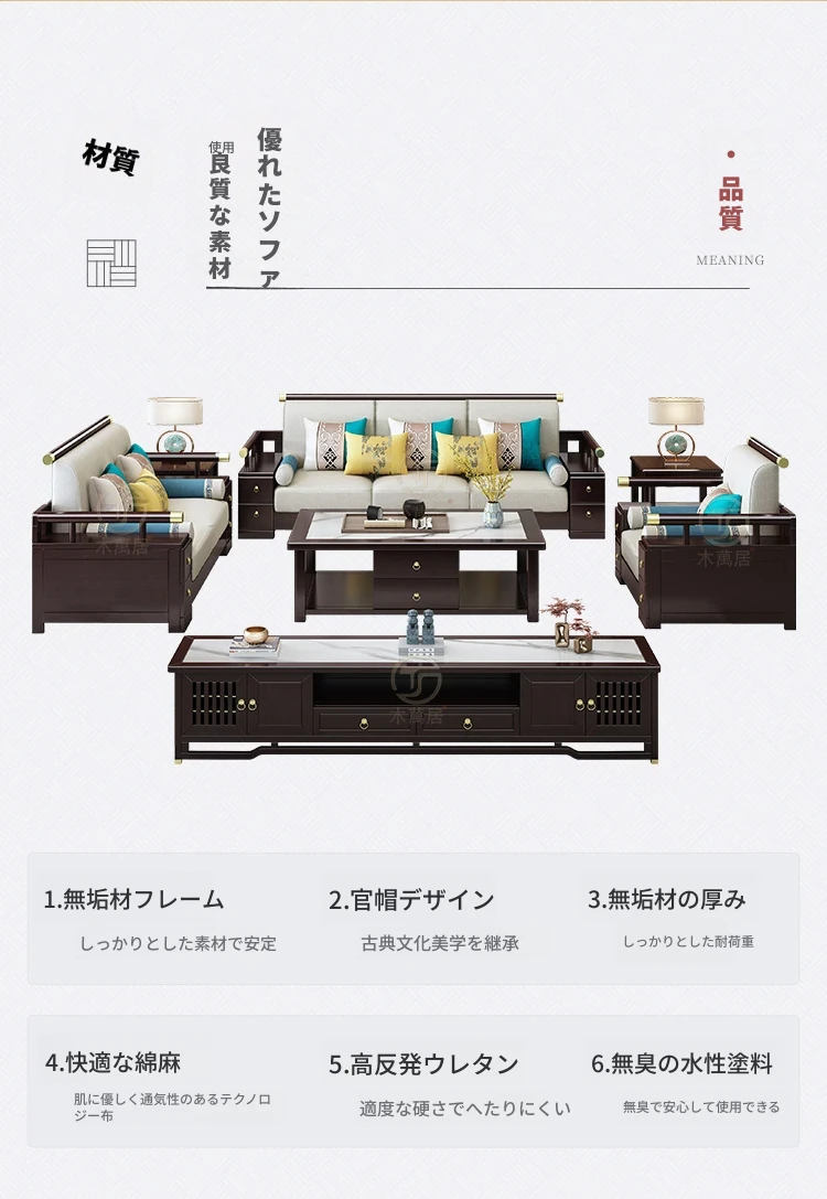 5人用ソファ+貴妃+コーヒーテーブル【35Dウレタン+通気性のある麻】