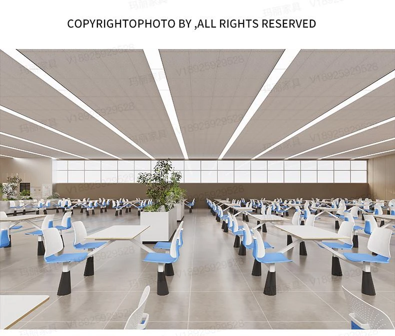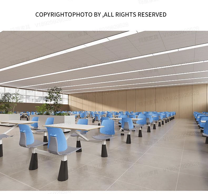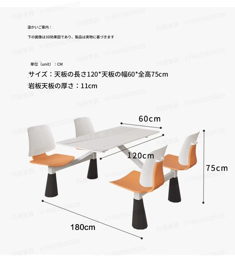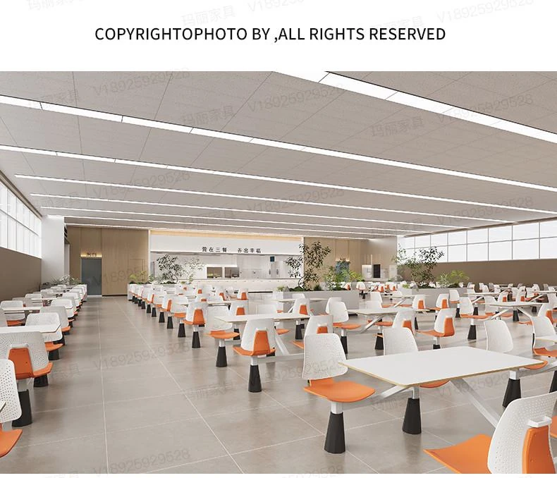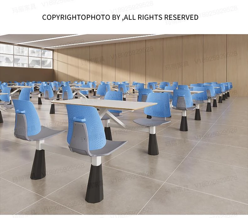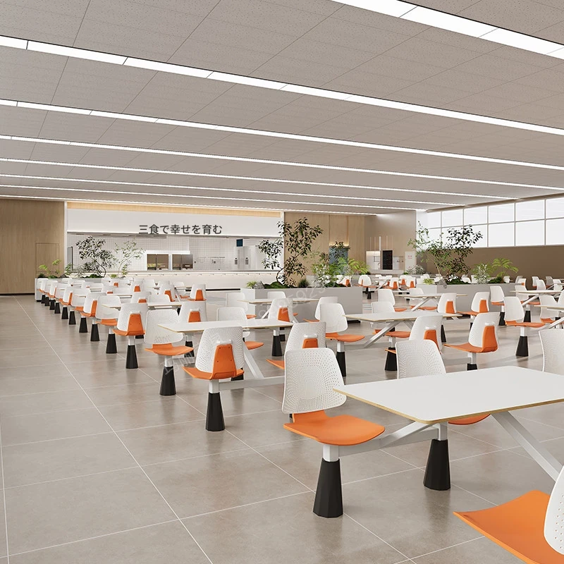 学校食堂や従業員食堂に最適!快適な4人用一体型ファーストフードテーブル&チェアセット - 高速サービスエリアやレストランでも大活躍!クイックサービスを実現するスタイリッシュなデザイン。
