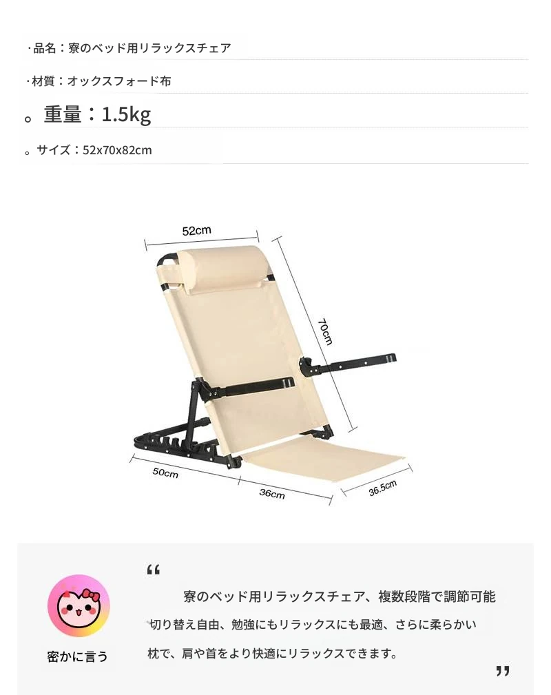 折りたたみ式リクライニングチェア、寝床での読書や勉強に最適な快適ソファ!大学生必見の省スペース設計で、長時間の座り仕事もラクラク。リラックスしながら学びをサポートします!