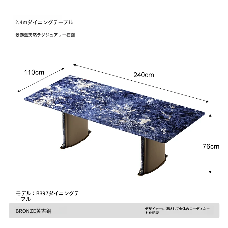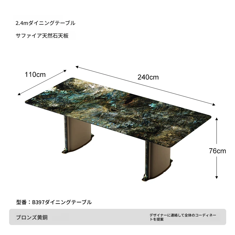 2.4m ダイニングテーブル [サファイアの贅沢な石面]