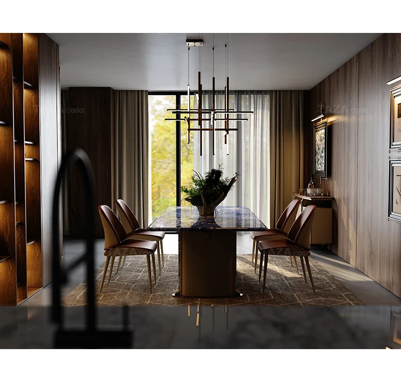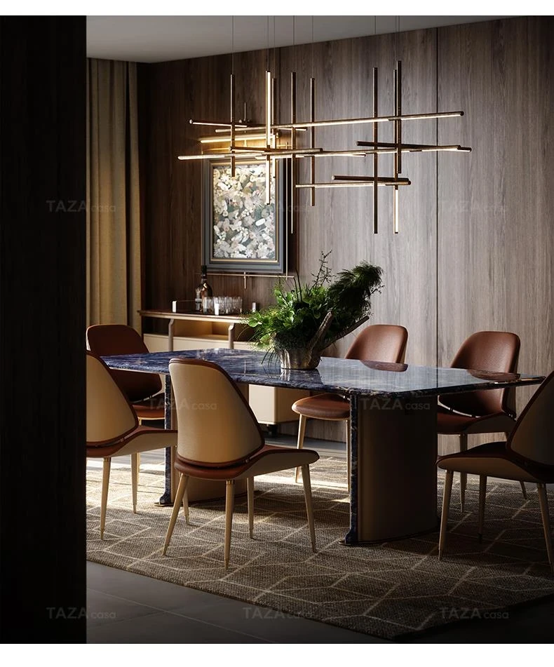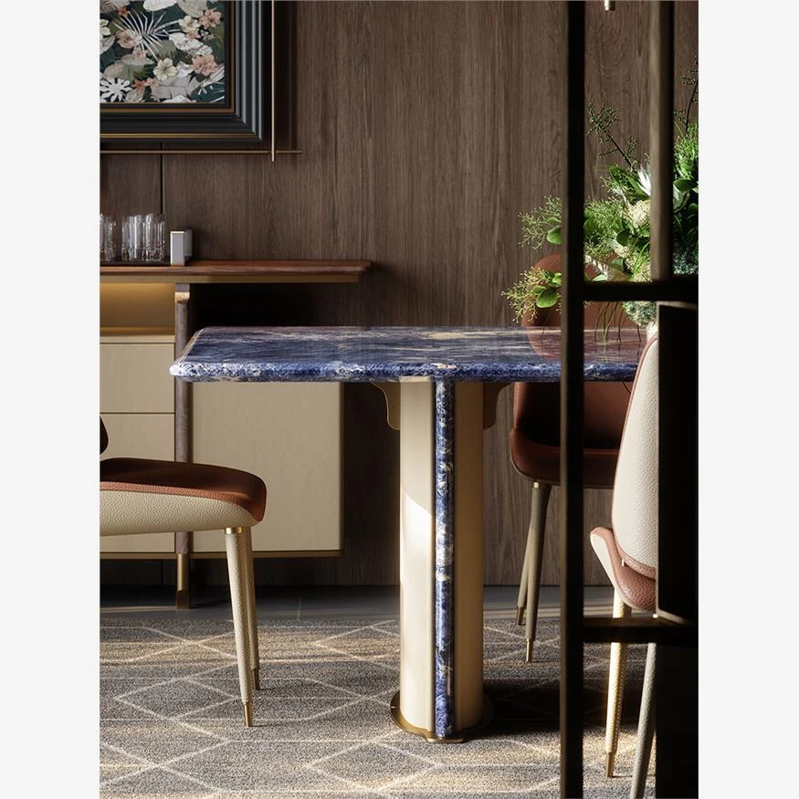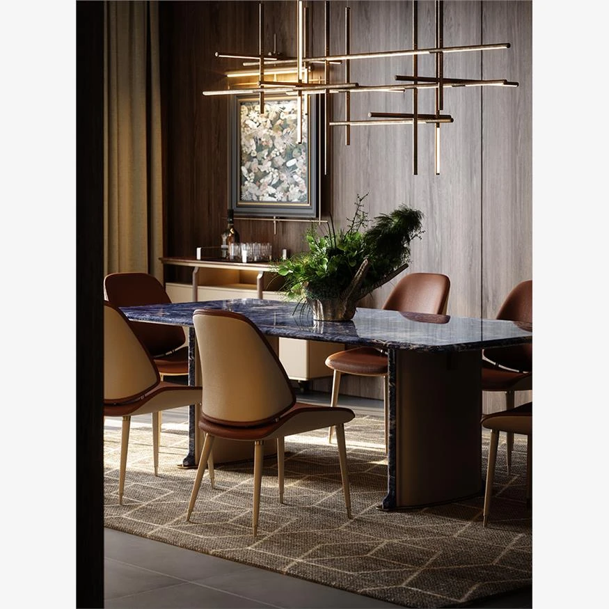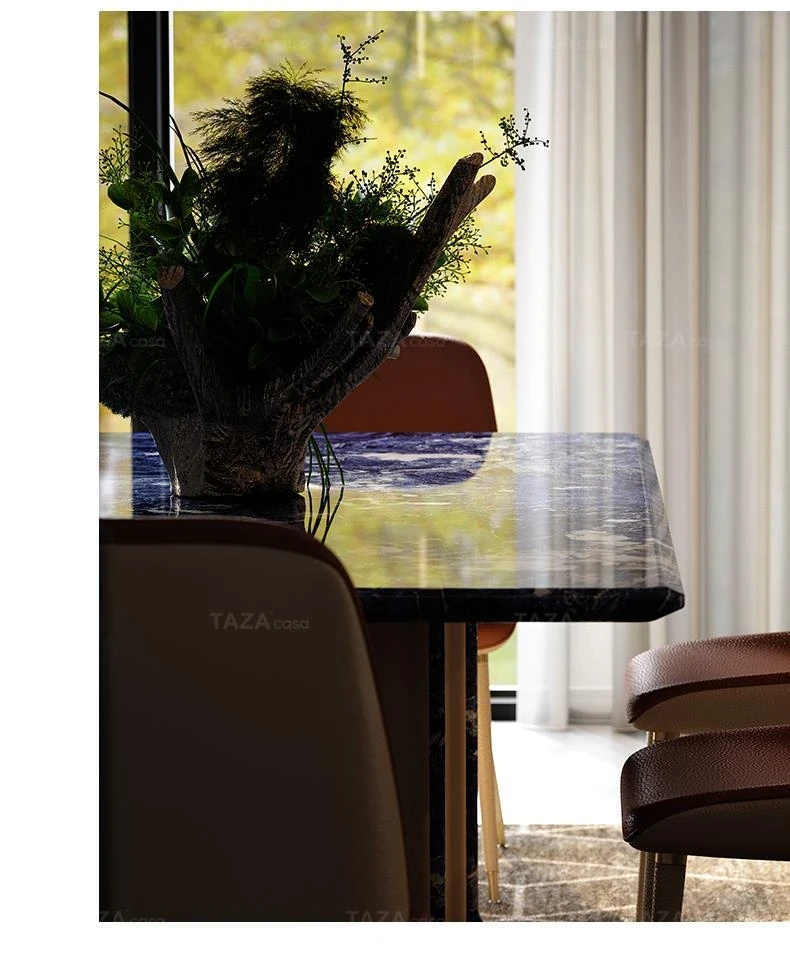 景泰蓝の豪華な長テーブルセット - 別荘や高級住宅にぴったり!洗練されたダイニングシリーズで、軽やかなラグジュアリーを体感。優雅な食卓を演出するテーブルとチェアのコンビネーション。