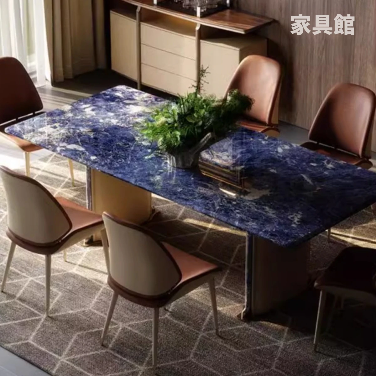 2.2m ダイニングテーブル [サファイアの贅沢な石面]+B159ダイニングチェア[L級 全青皮]*6