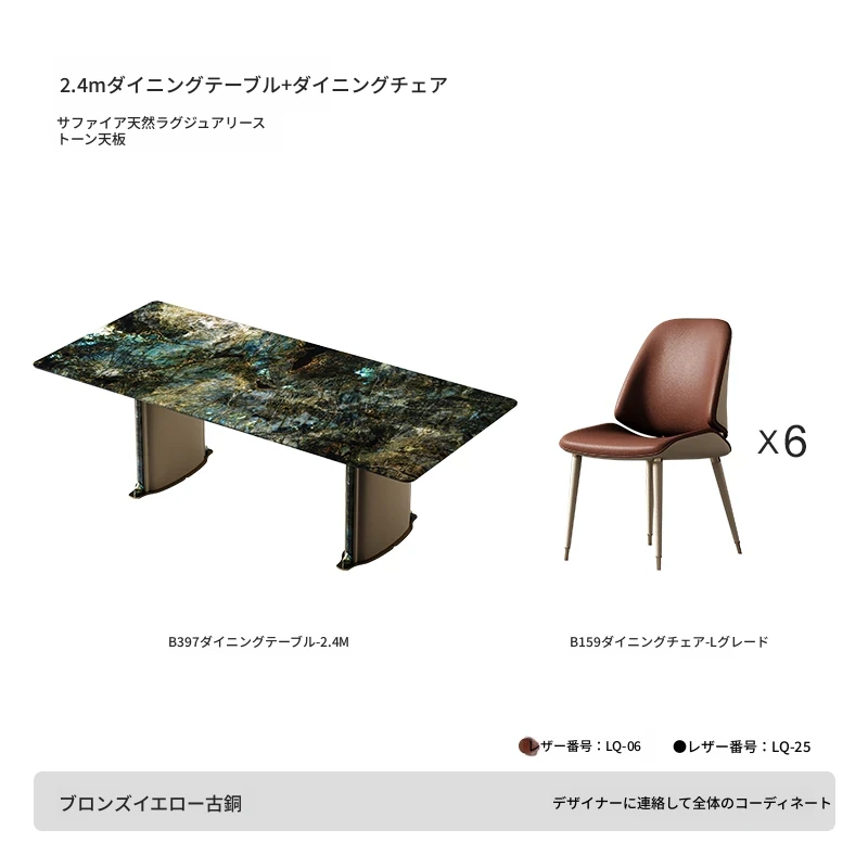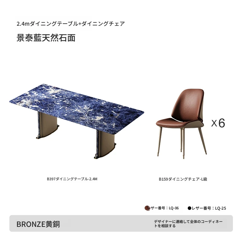 2.4m ダイニングテーブル [景泰蓝の贅沢な石面]+B159ダイニングチェア[L級 全青皮]*6