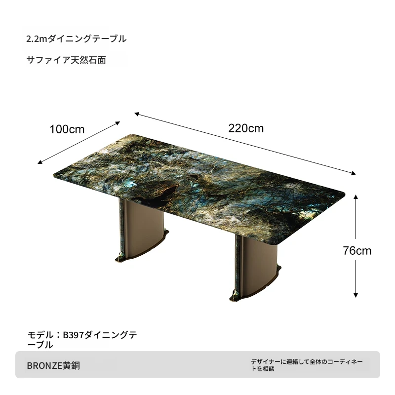 2.2m ダイニングテーブル [サファイアの贅沢な石面]