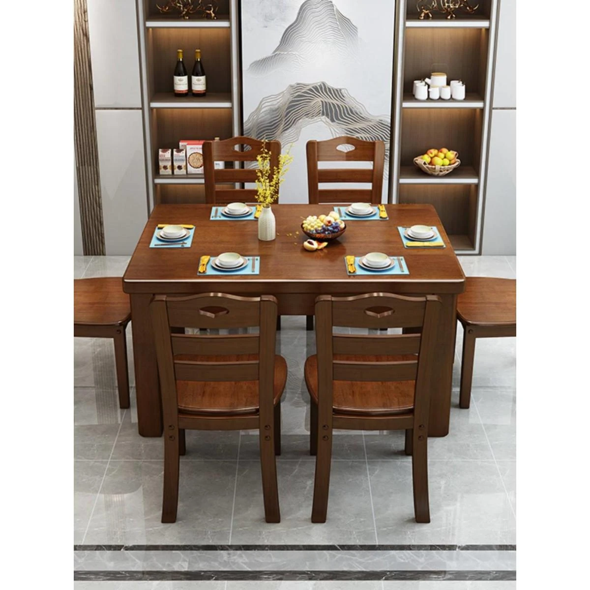Luxury Blue-and-White Porcelain Long Dining Table for Villa - Elegant Dining Room Collection for Spacious Homes, Perfect for Modern Sophistication and Stylish Entertaining