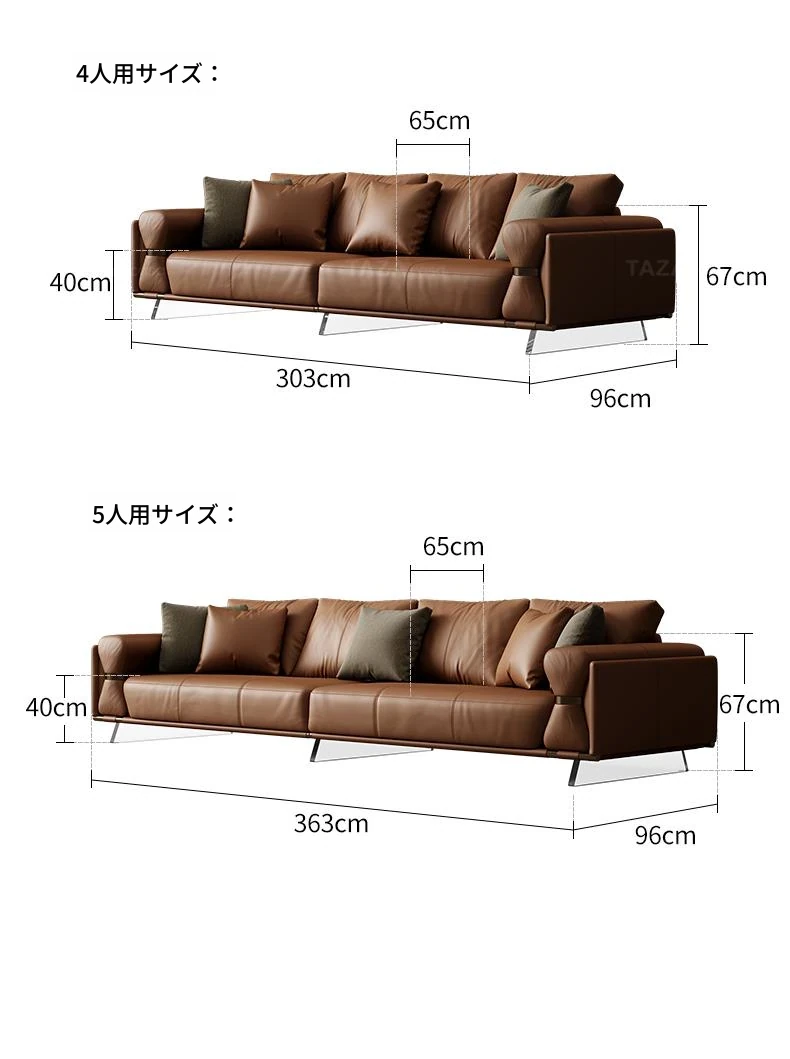 五人掛け Hourglass ソファ [ V級 全粒面中厚牛革]