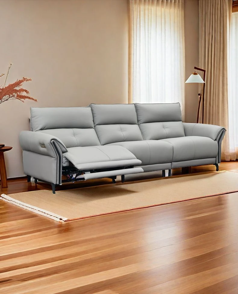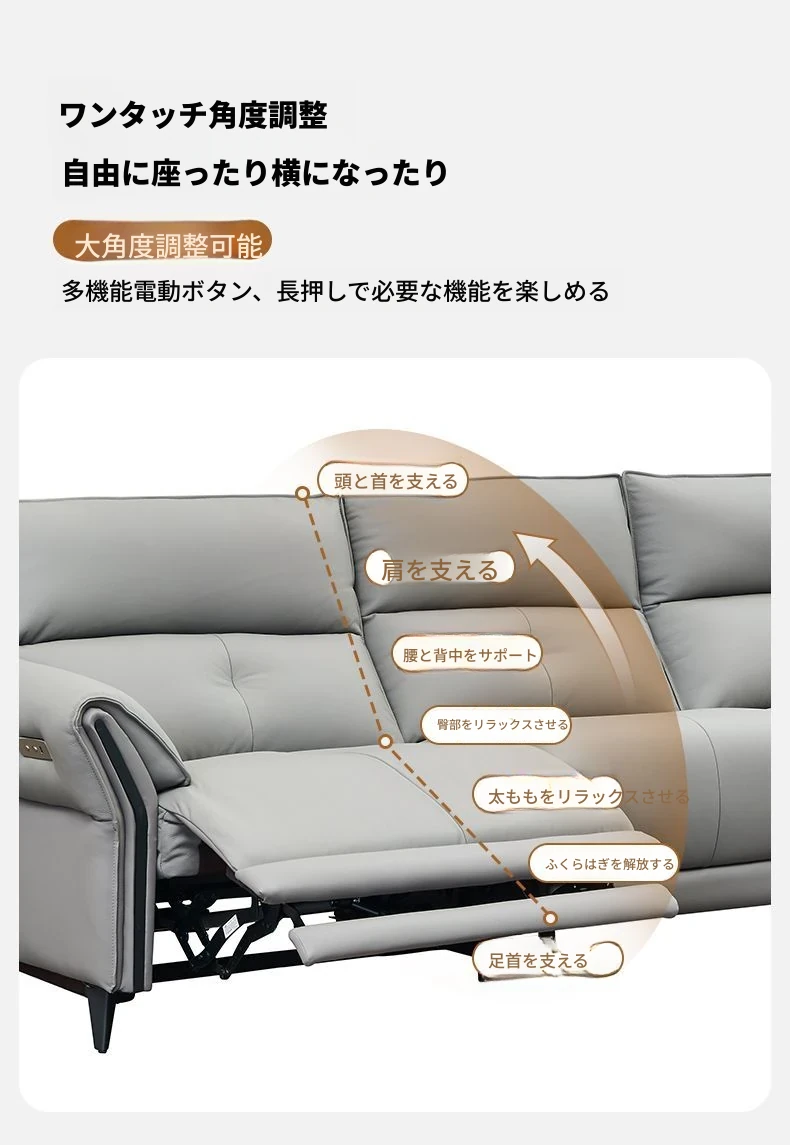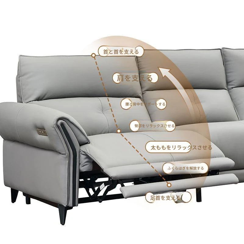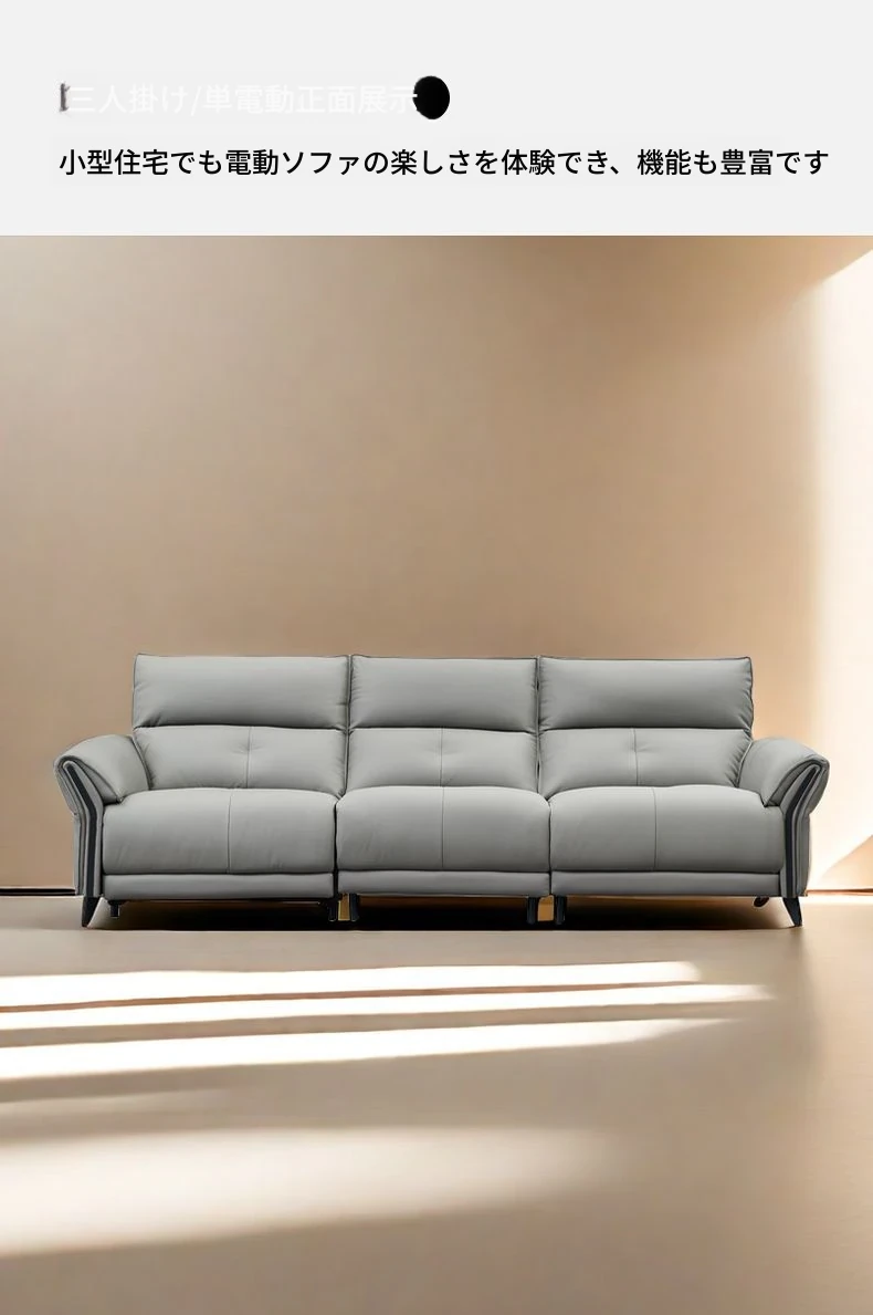 壁を必要としない高級電動レザーソファ - 高い背もたれで快適なリラックス体験!リビングにぴったりのイタリアンスタイル、3人掛けで機能的に調整可能。洗練された軽やかさをあなたの空間に。