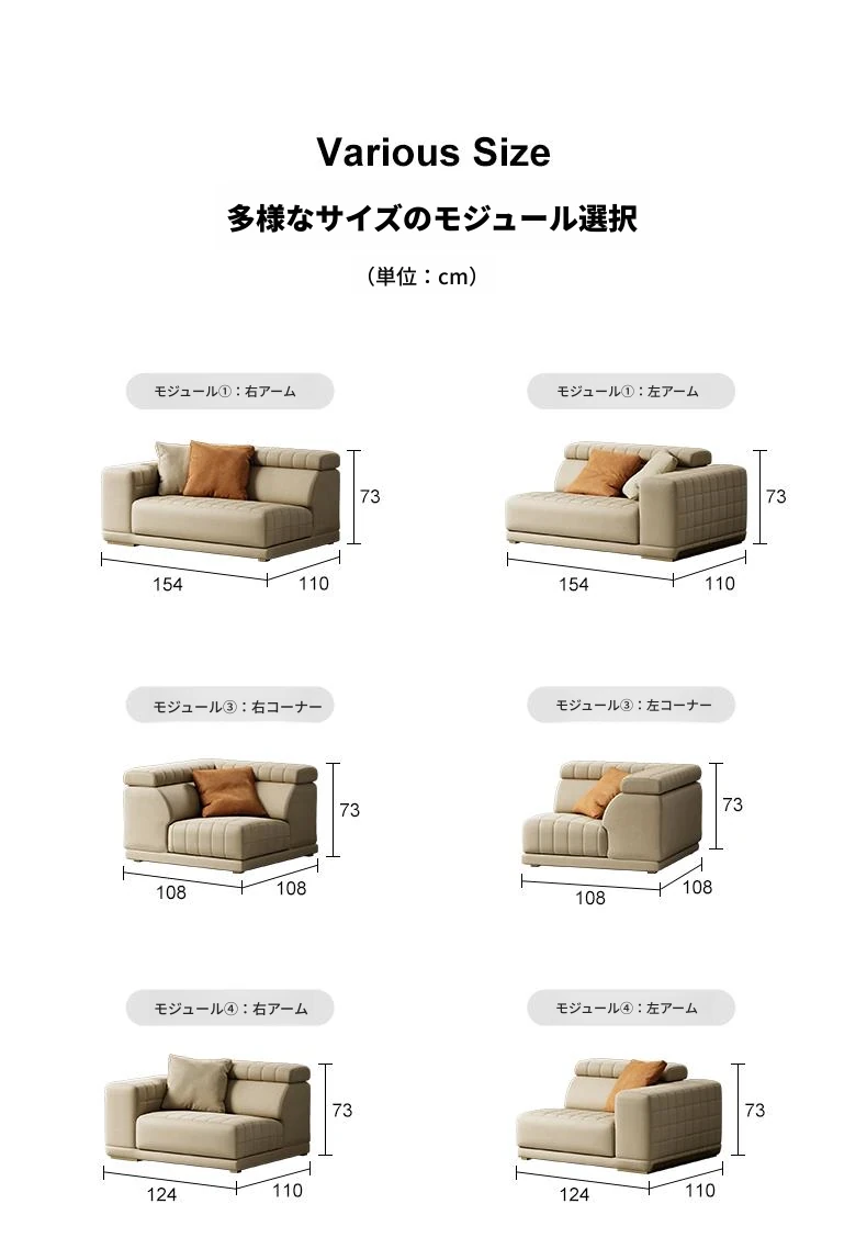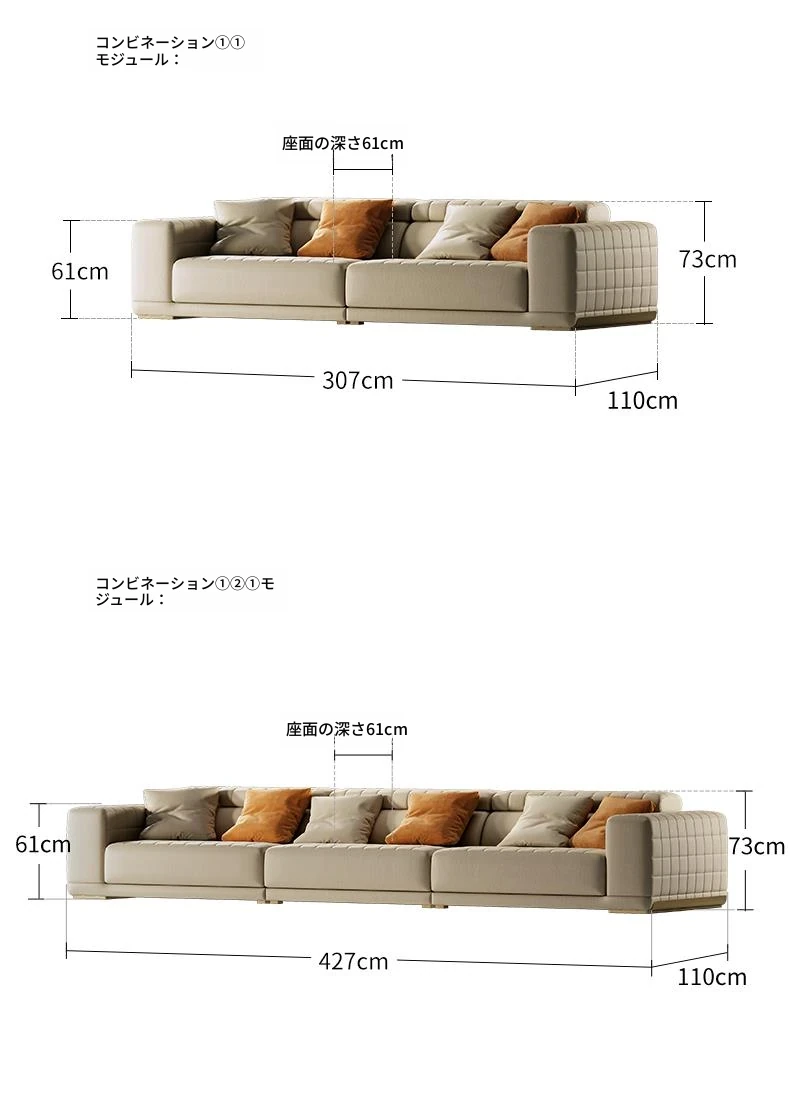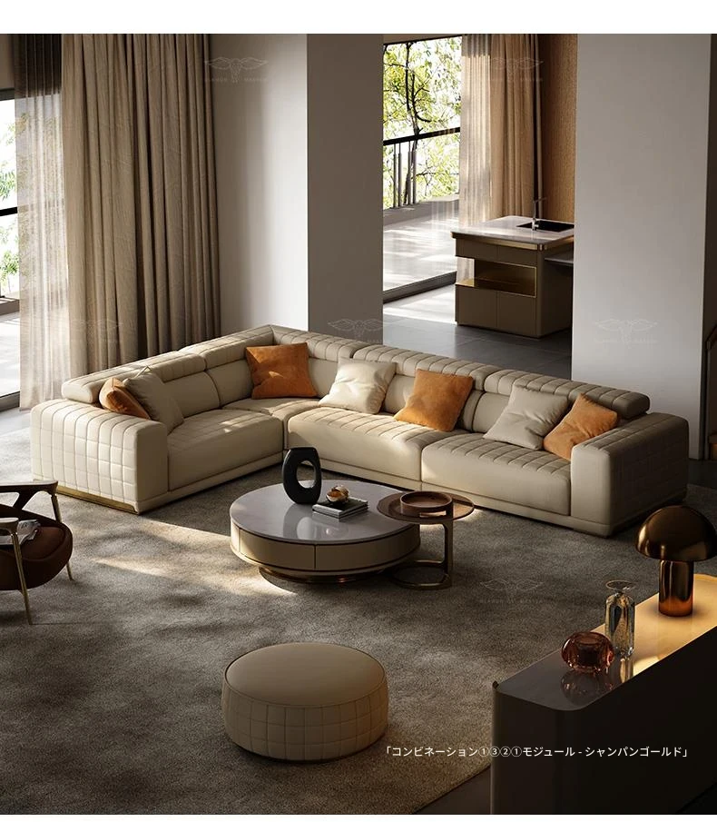 機能ソファ/コンビネーション①③②①モジュール/V級全真皮/シャンパンゴールド