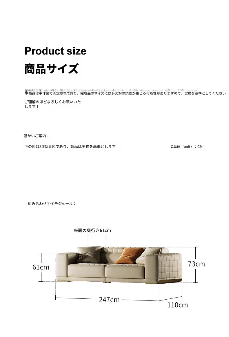 機能ソファ/コンビネーション①②①モジュール/V級全真皮/シャンパンゴールド