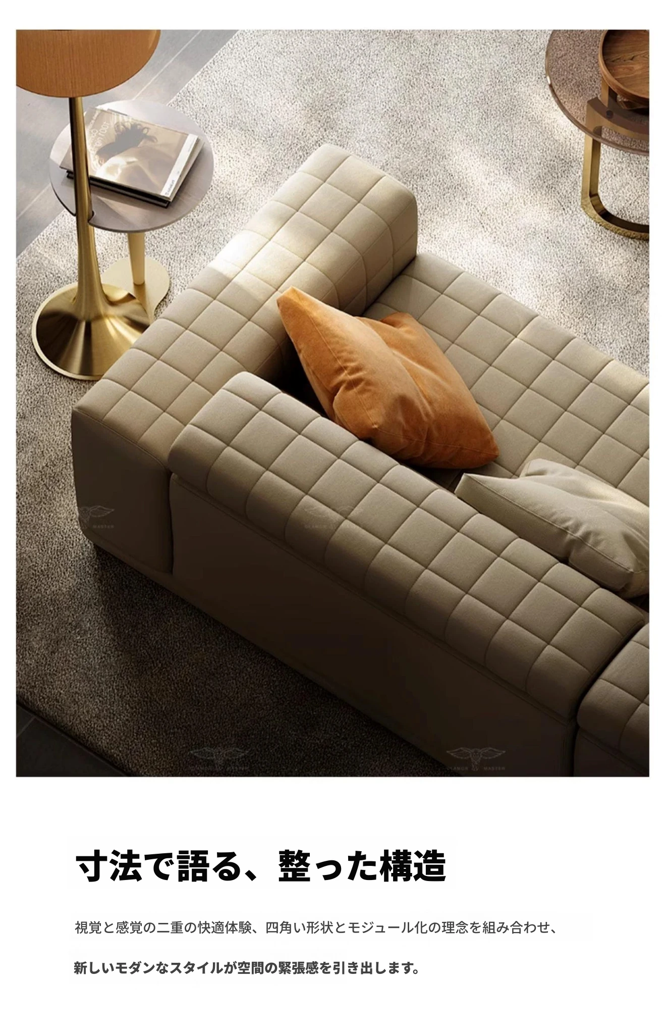 機能ソファ/コンビネーション①②①モジュール/S級全真皮/シャンパンゴールド