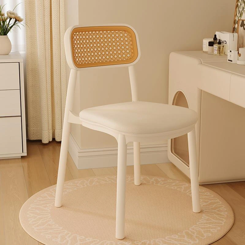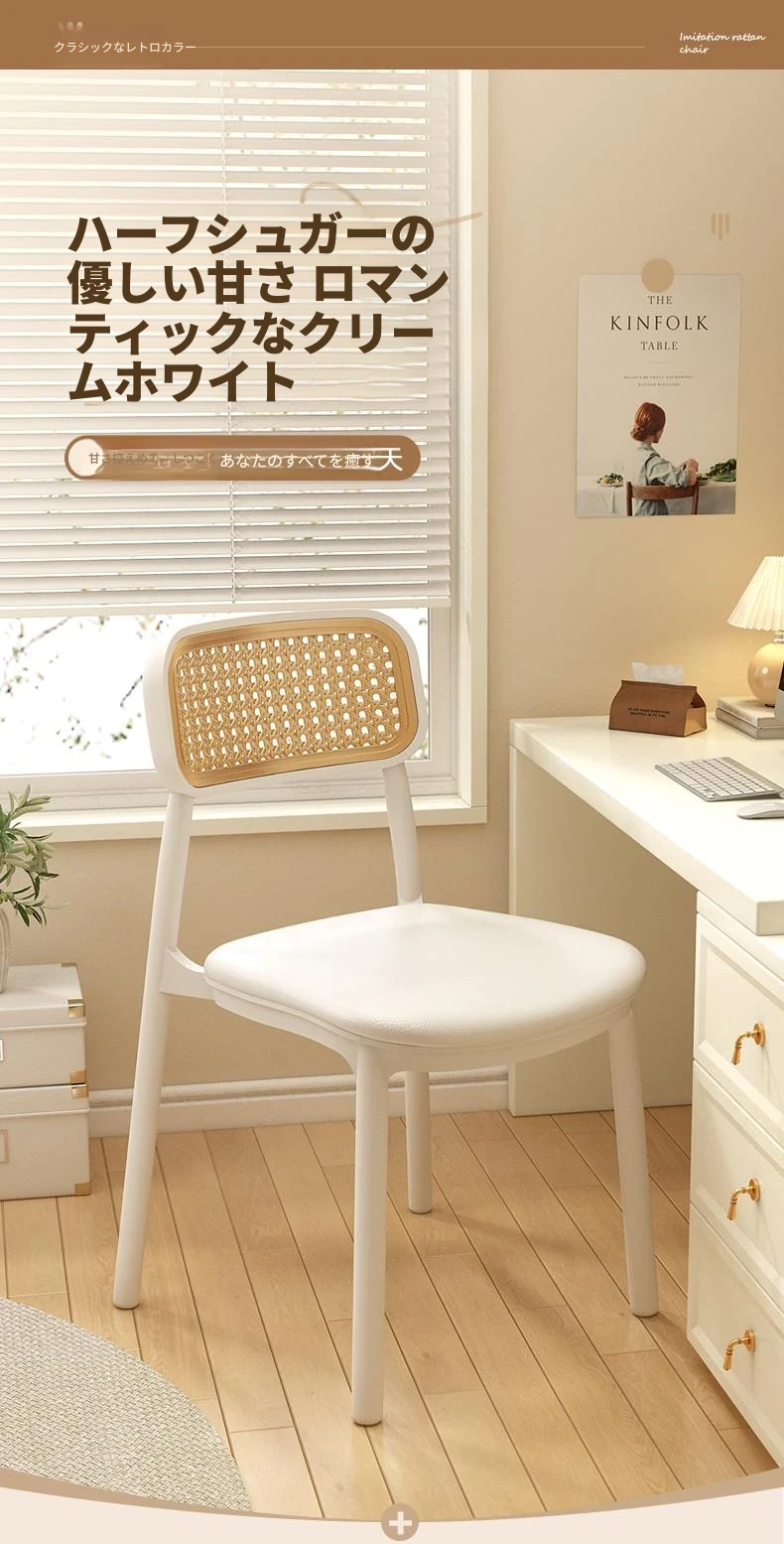 シンプルでおしゃれな化粧椅子!女子の寝室にぴったりなコスメテーブル用のスツール。クリーミーな風合いと編み込みデザインで、小さなスペースにも最適なダイニングチェアやデスクチェアとしても大活躍!