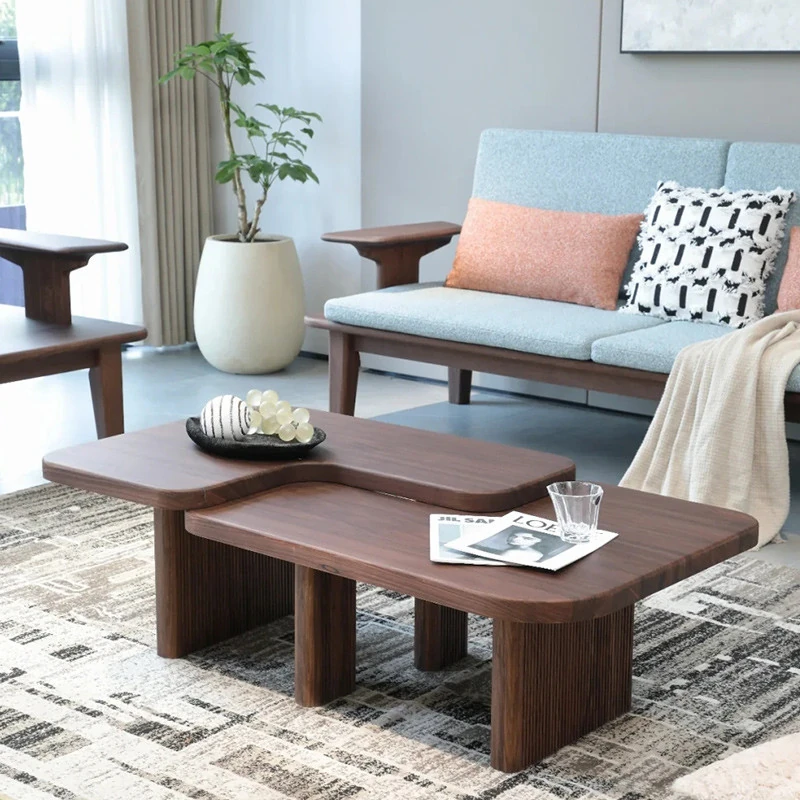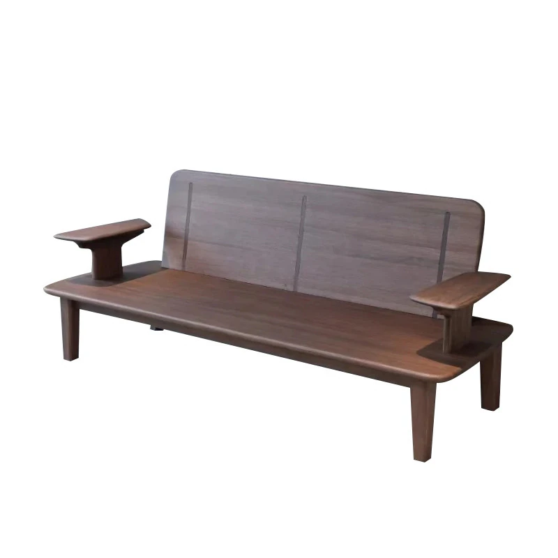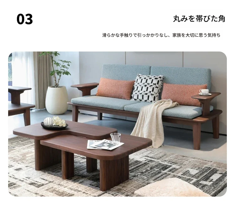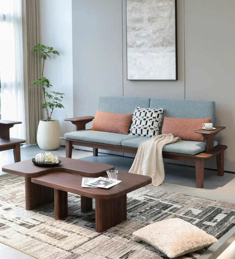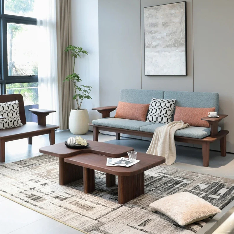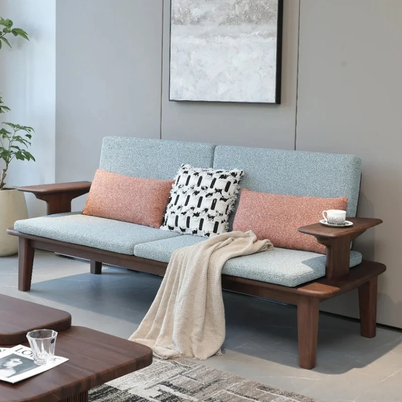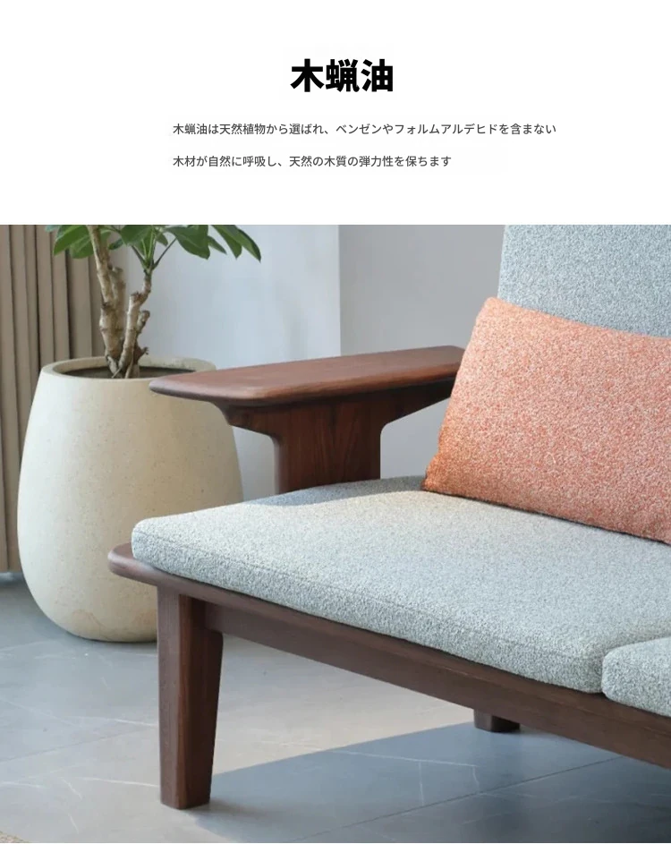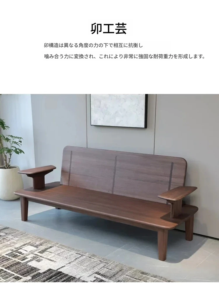 新中式デザインのウォールナット無垢材ソファ - 小型住宅に最適!冬夏両用、洗えるファブリック仕様で、快適さとスタイルを両立。狭いスペースでもおしゃれに!