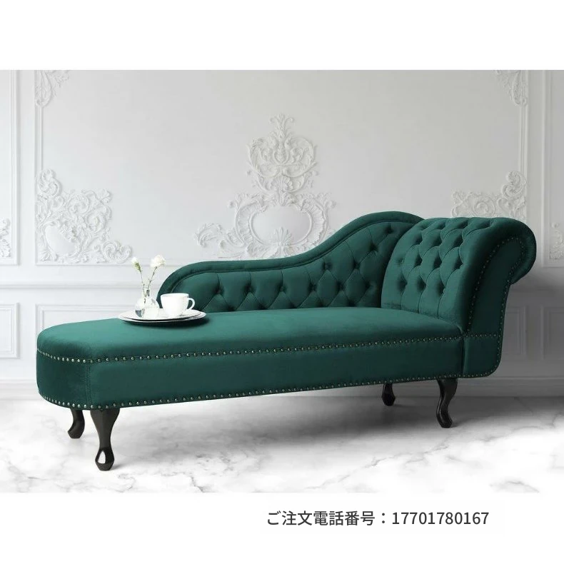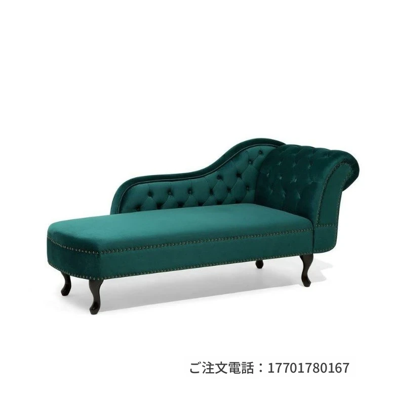 モダンな香港スタイルのエメラルドグリーン・貴妃椅子、シンプルで洗練されたアメリカン・ジャパニーズ・北欧デザインのリビングルーム向け、ラグジュアリーな別荘にぴったりなサンプルソファ!