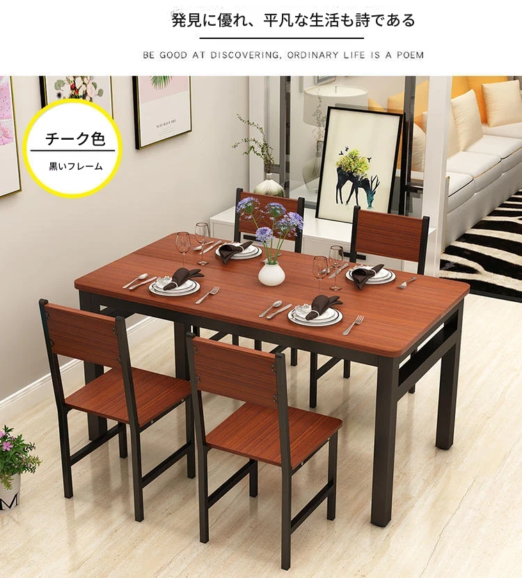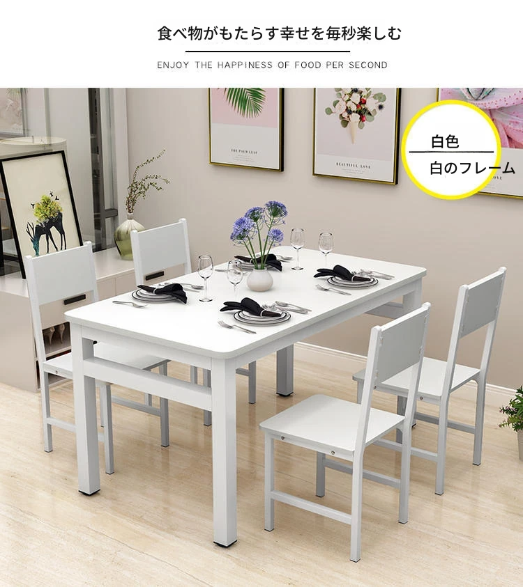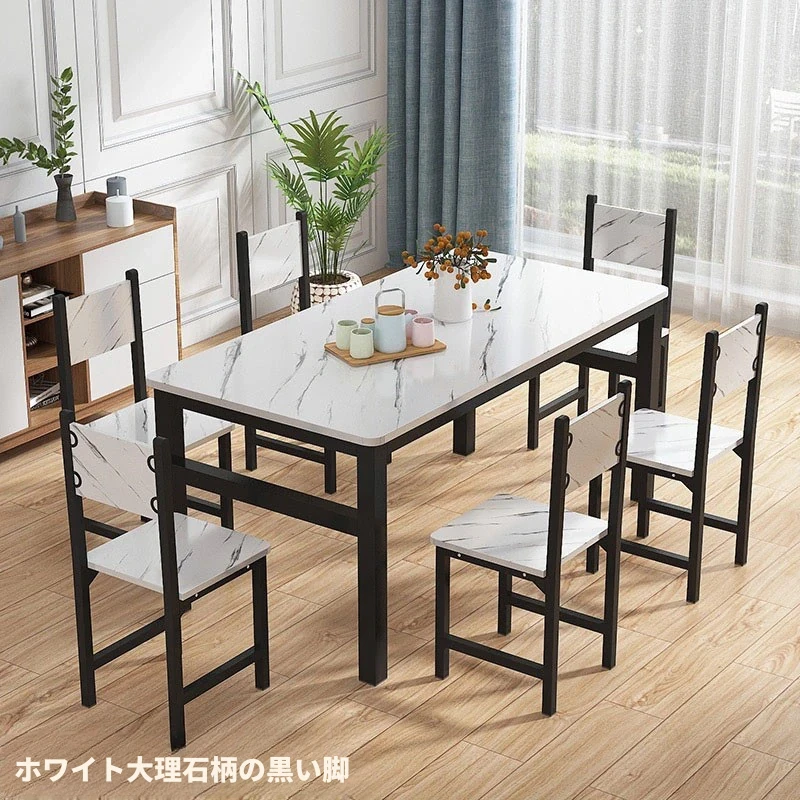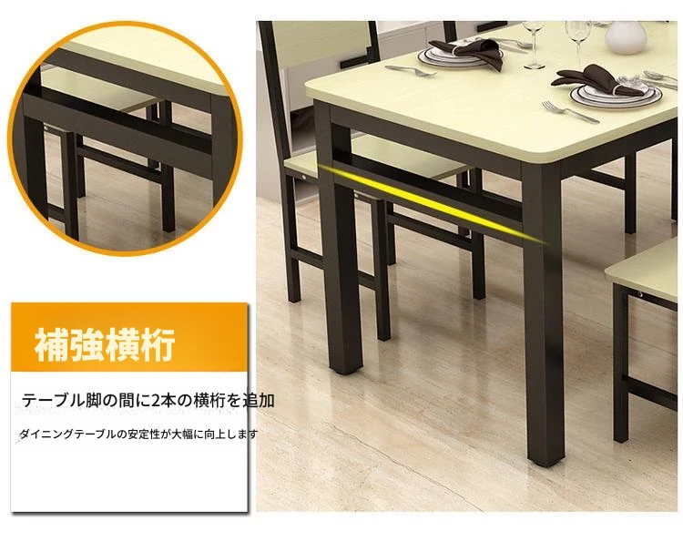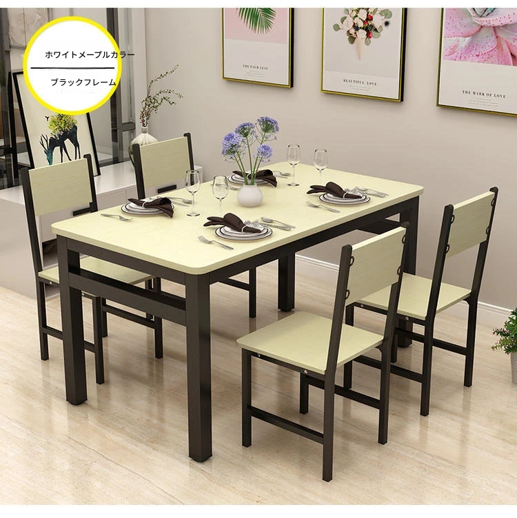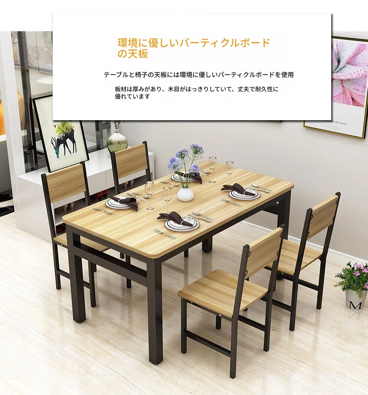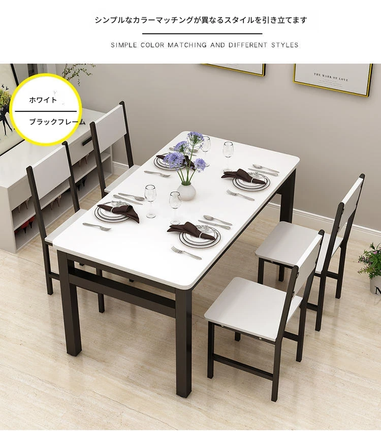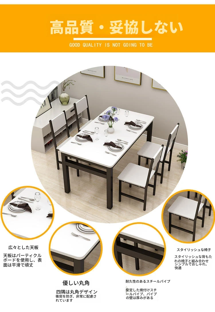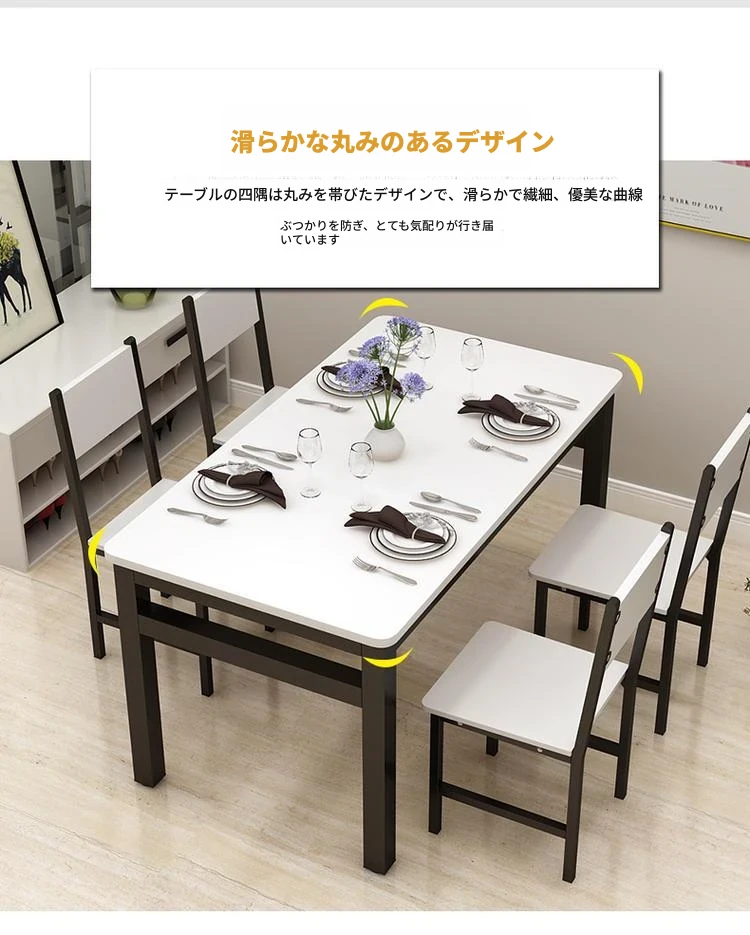 現代的ミニマリスト46人用簡易ダイニングテーブルセット|小スペースにぴったりな長方形テーブル|家庭やカフェに最適な快適な食事空間を演出!