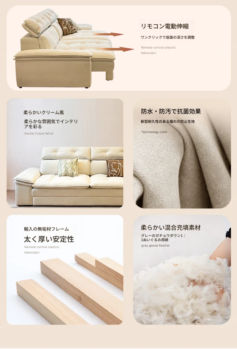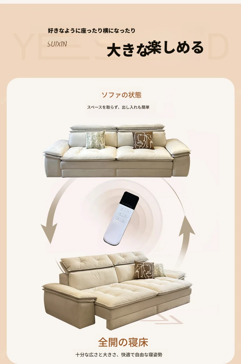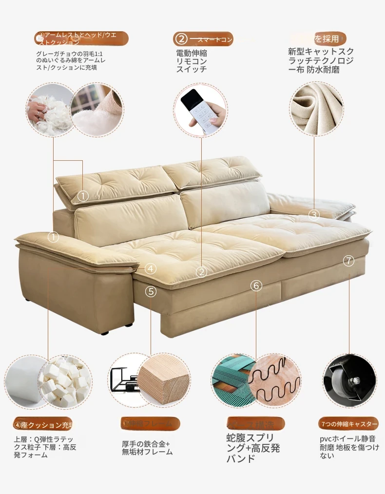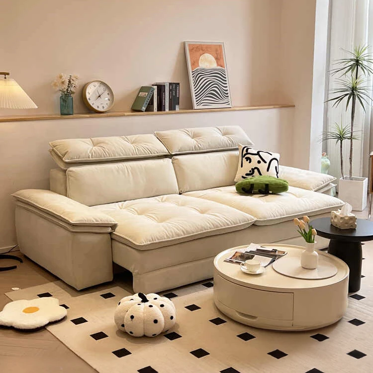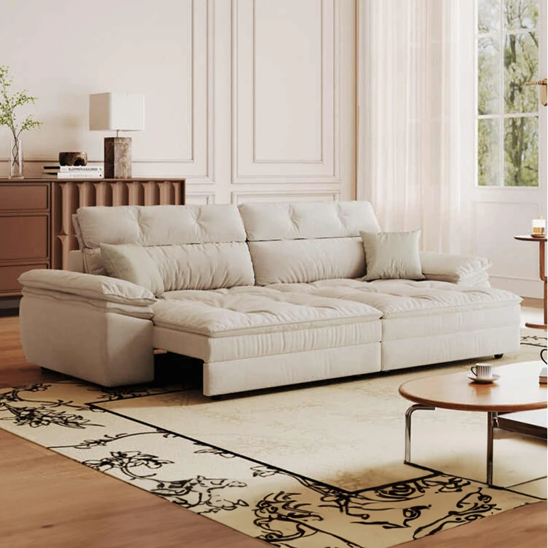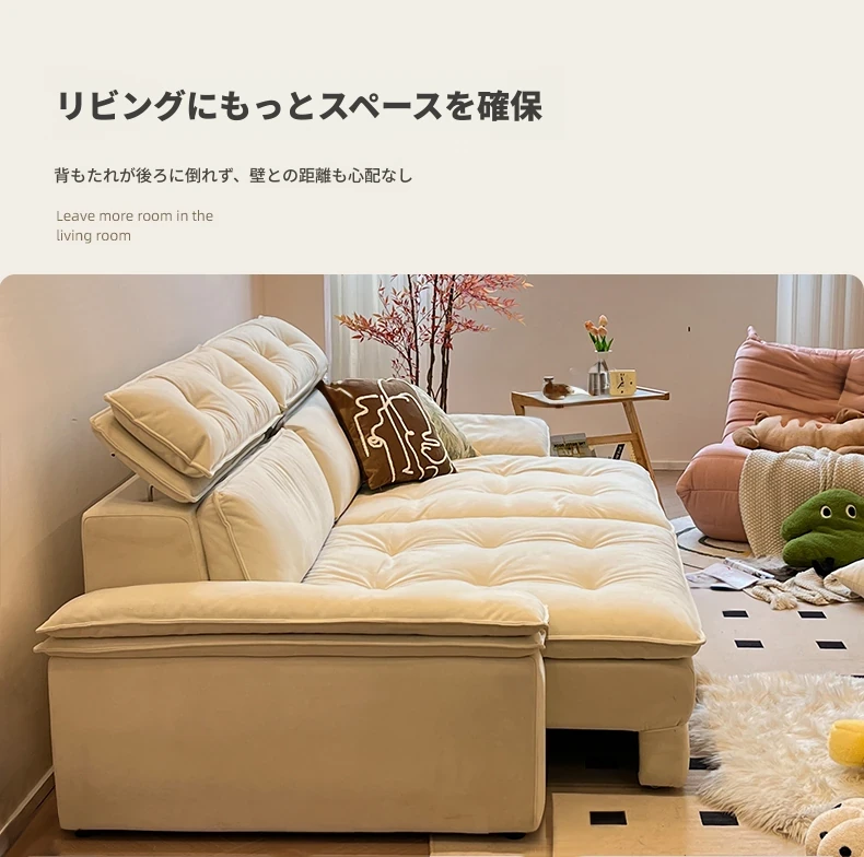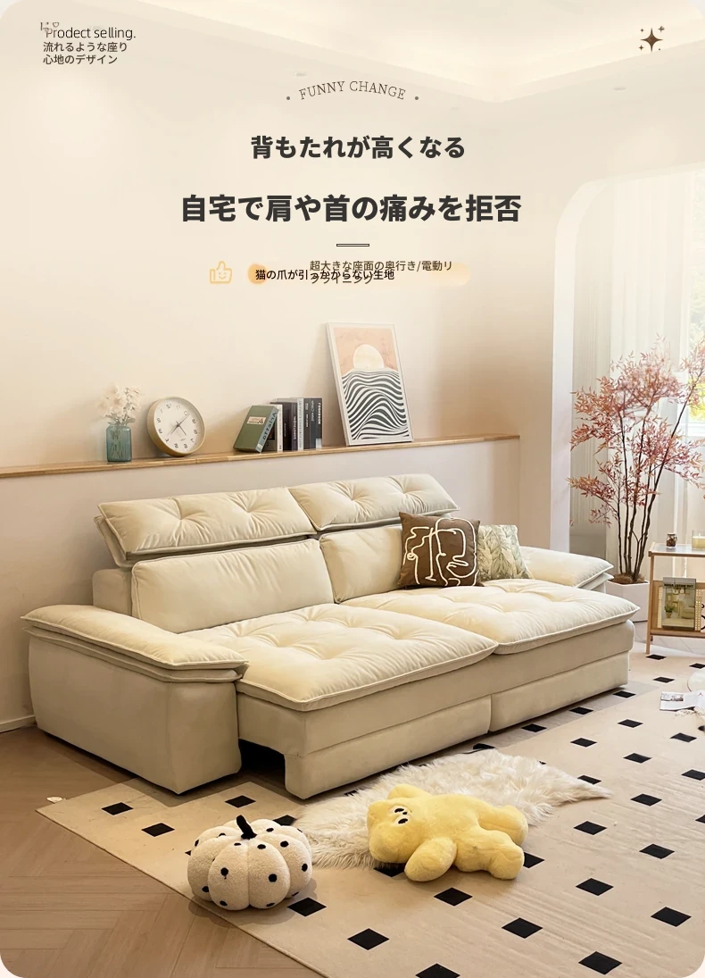 モダンでシンプルな小型帆船型電動伸縮ソファー - リビングにぴったりのクリーム色、調整可能な機能、猫の爪とぎ布製、快適な直排デザインでくつろぎのひとときをお楽しみください!