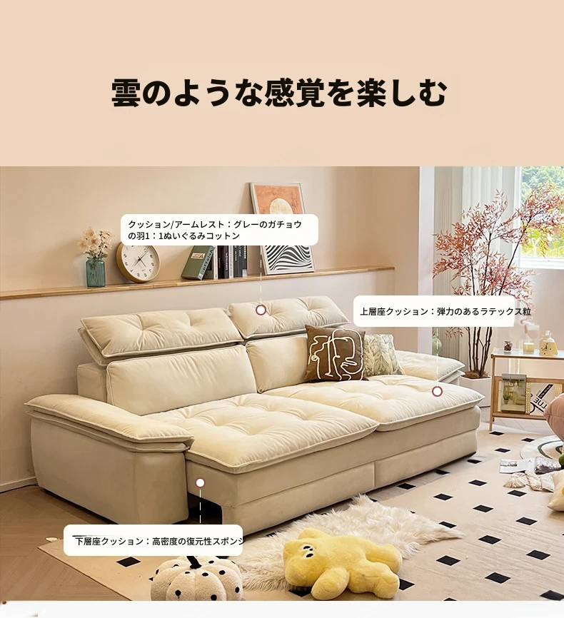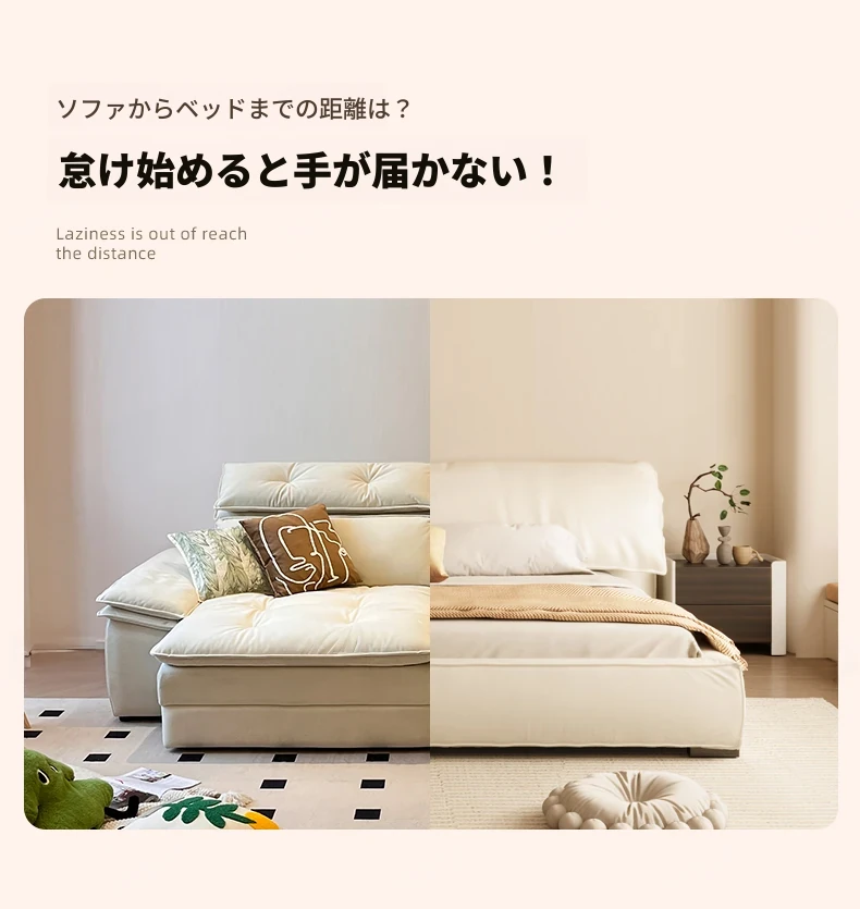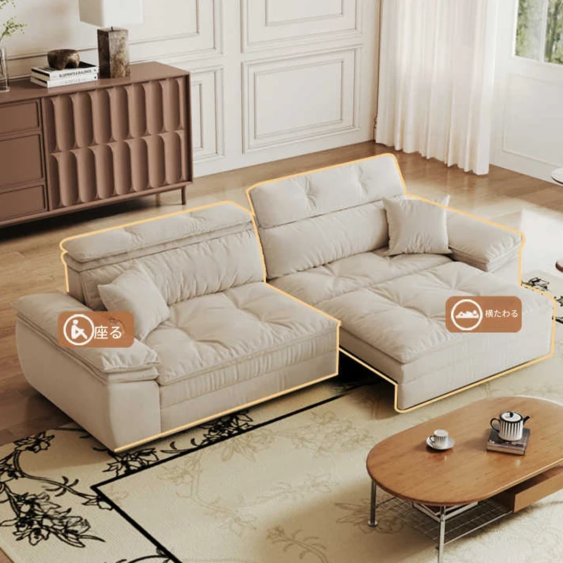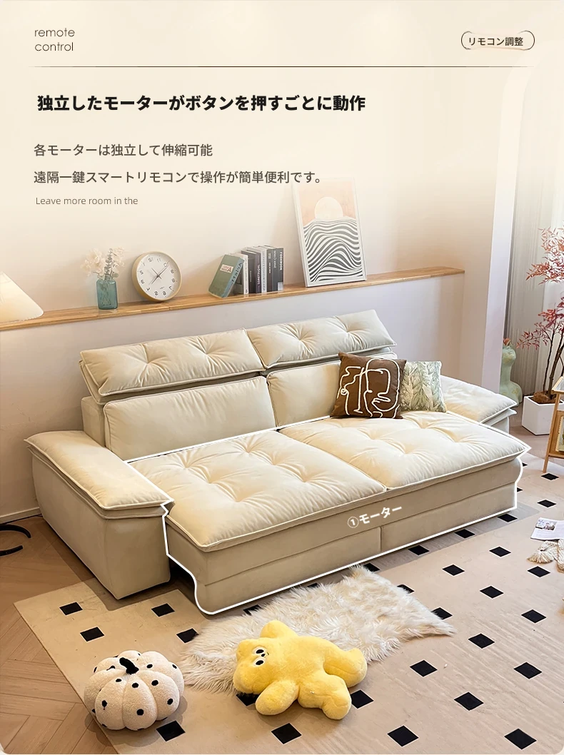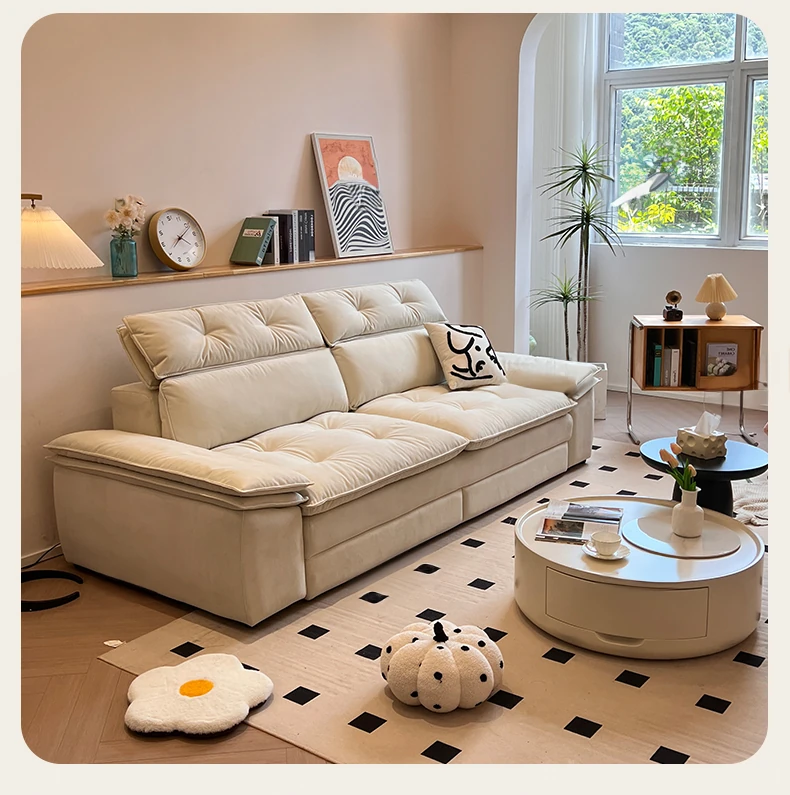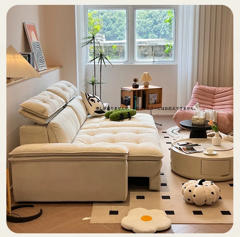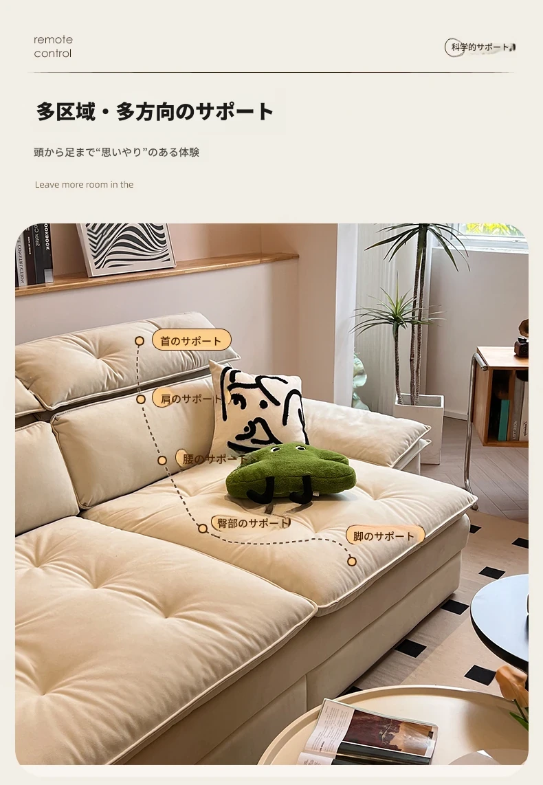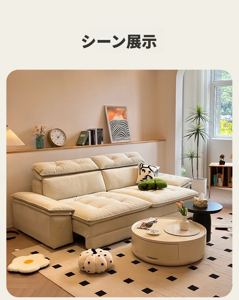 モダンでシンプルな小型帆船型電動伸縮ソファー - リビングにぴったりのクリーム色、調整可能な機能、猫の爪とぎ布製、快適な直排デザインでくつろぎのひとときをお楽しみください!