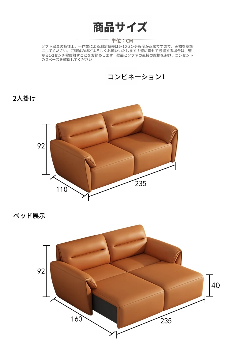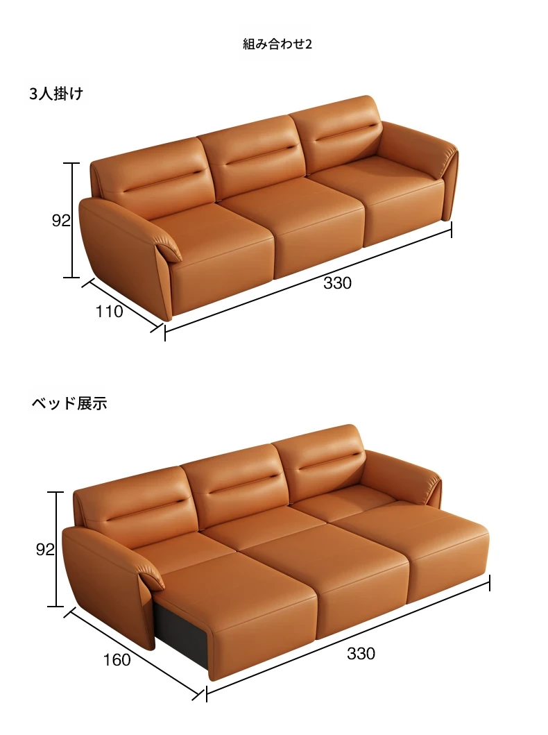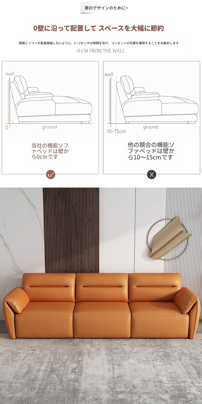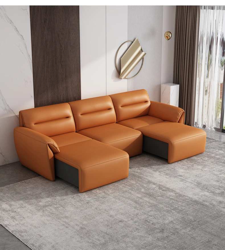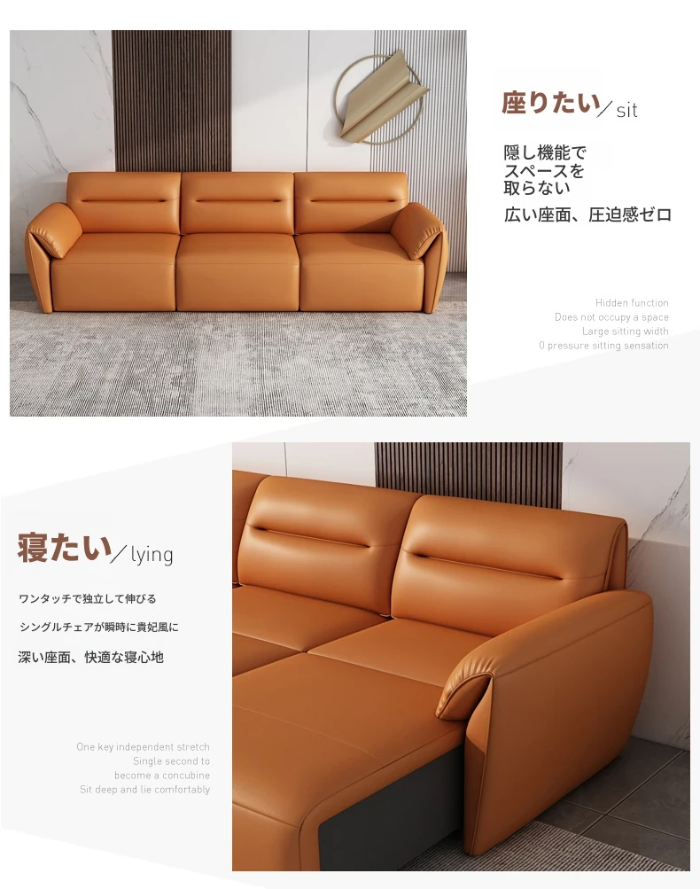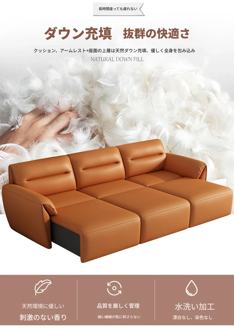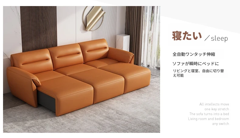 モンスケ美リモコン伸縮ソファベッド 本革製 イタリアンライトラグジュアリー 電動コンビネーションソファ 大中小タイプに対応 おしゃれで快適な空間を演出!
