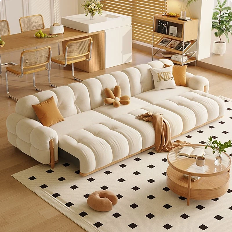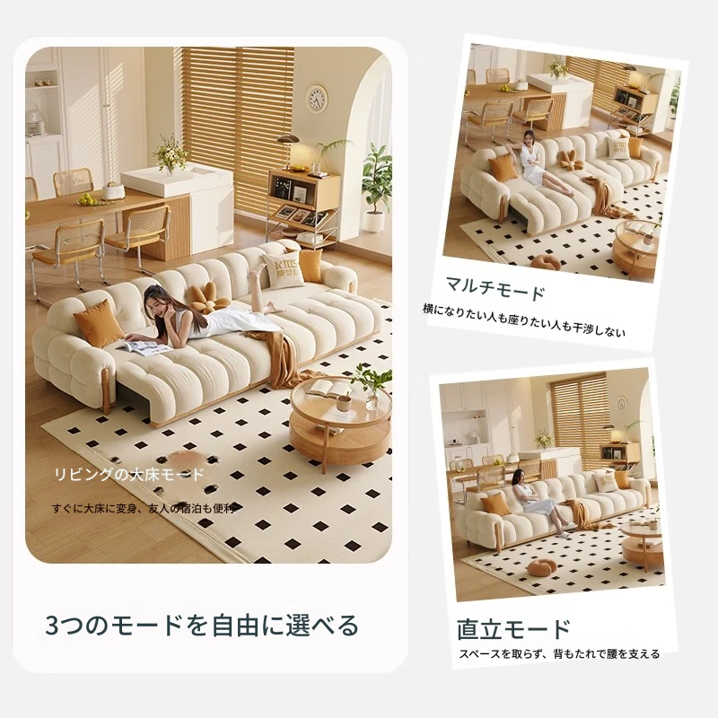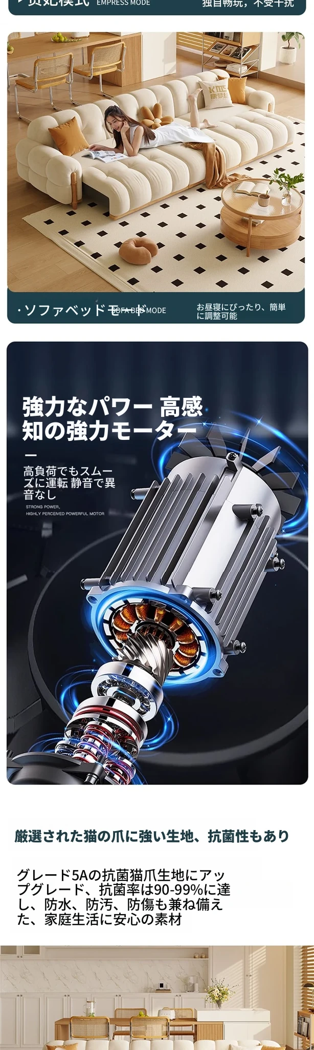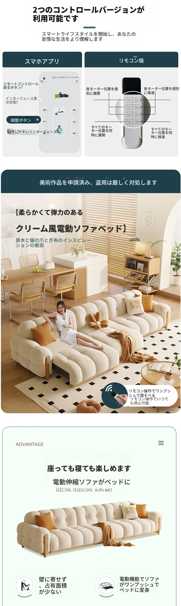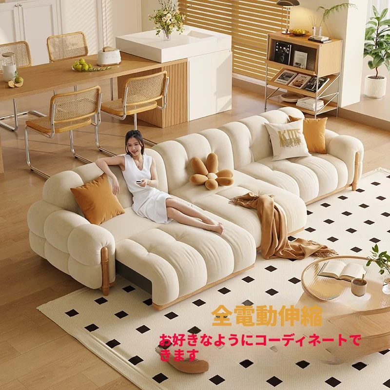 新作!原木スタイルのクリーム風、コンパクトな伸縮式ベッド付きキャットスクラッチソファ。電動機能搭載の3人掛け、狭いスペースにもぴったり!快適なリビング空間を演出します。