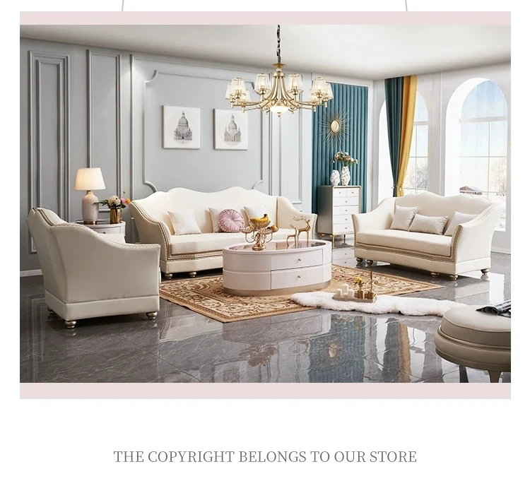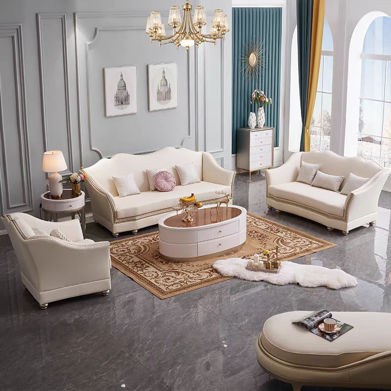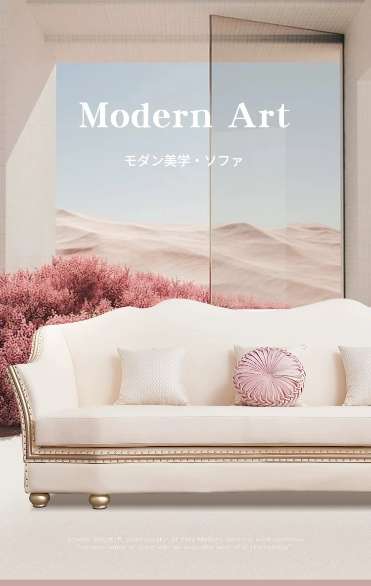 アメリカンスタイルのラグジュアリー実木ソファセット|フレンチモダンのミニマリストデザイン|小型リビングに最適な3人掛けヨーロピアン家具
