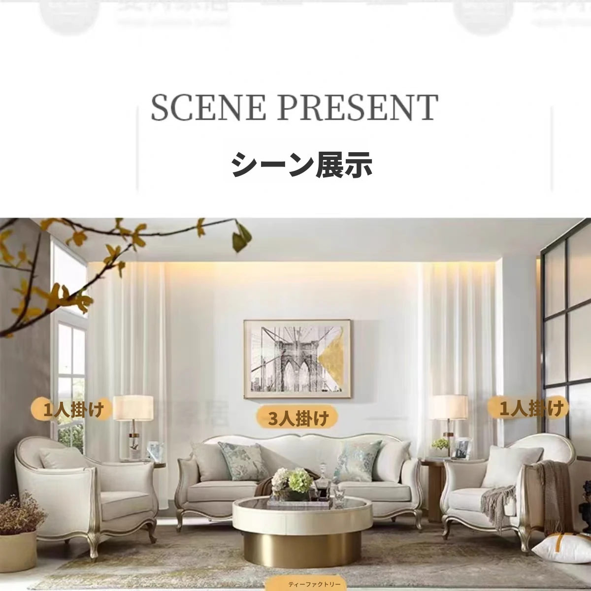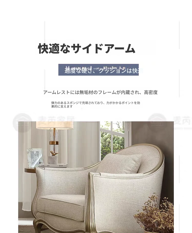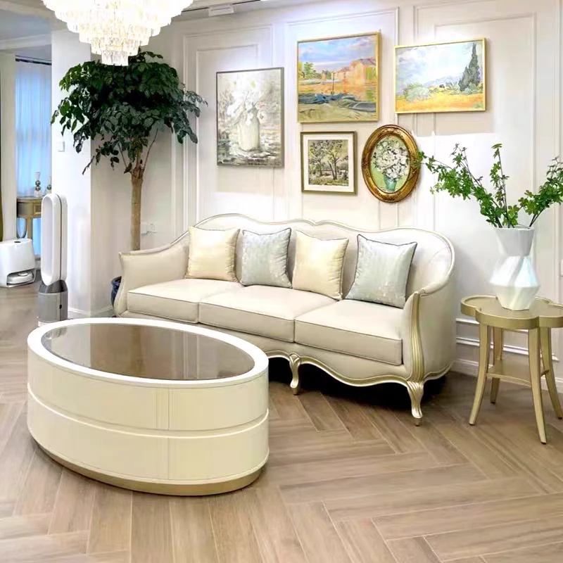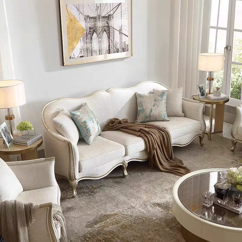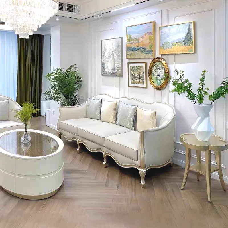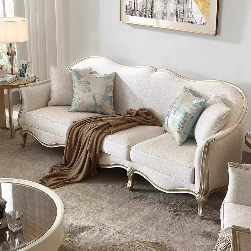 アメリカンスタイルのラグジュアリーな無垢材ソファセット|フレンチモダンなシンプルデザイン|小さなリビングにもぴったりな3人掛けヨーロピアンスタイル家具!上質な居心地を実現します。