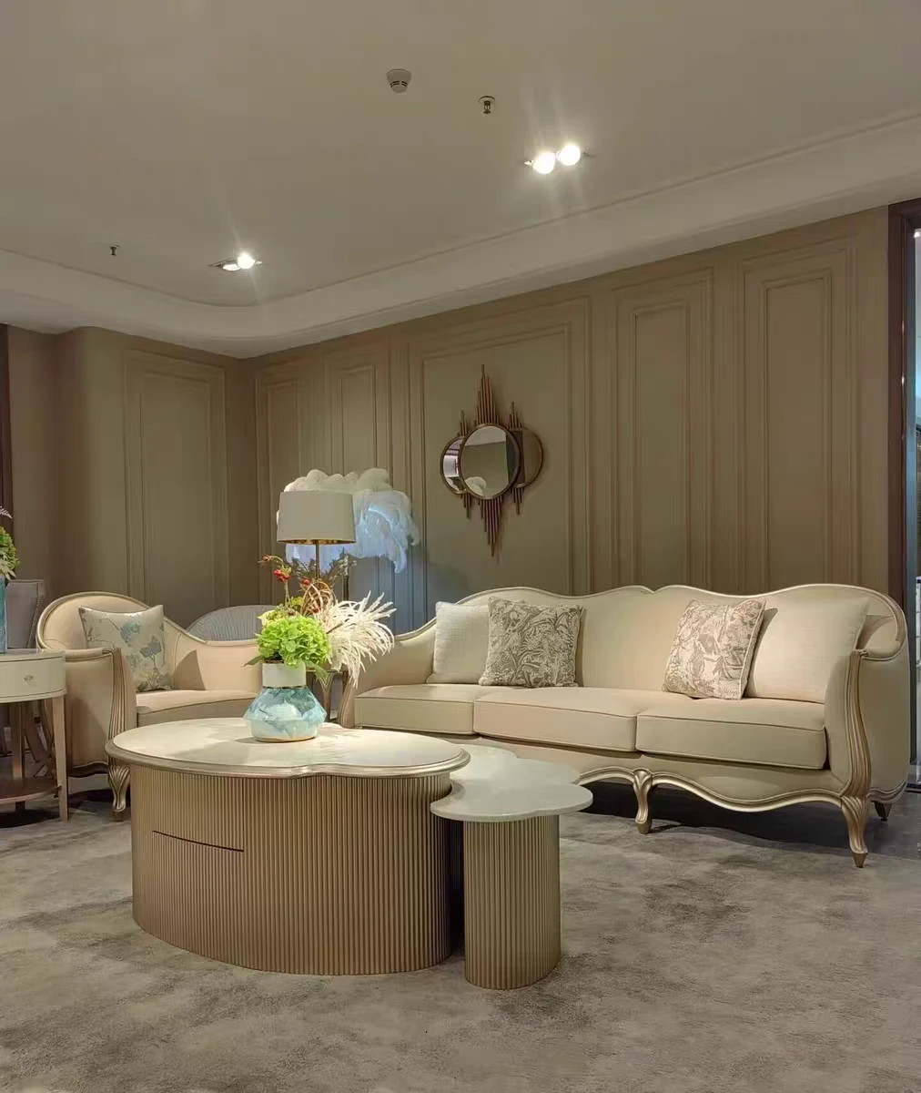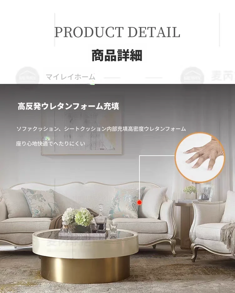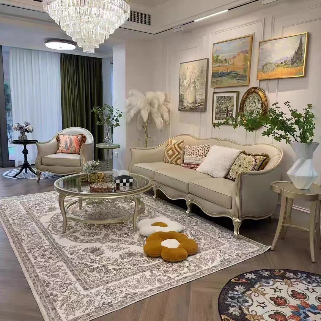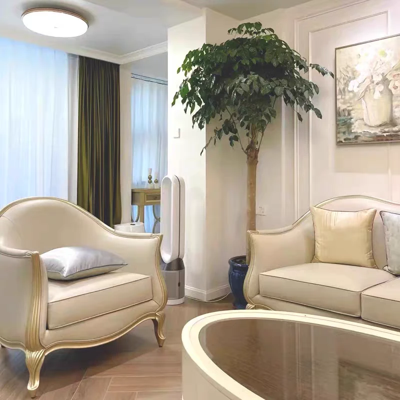 アメリカンスタイルのラグジュアリーな無垢材ソファセット|フレンチモダンなシンプルデザイン|小さなリビングにもぴったりな3人掛けヨーロピアンスタイル家具!上質な居心地を実現します。