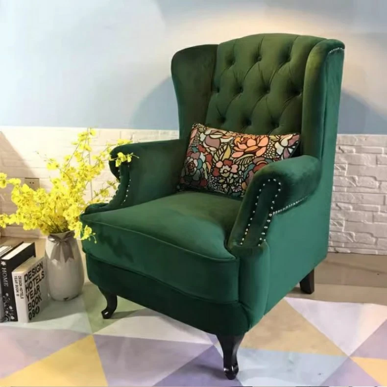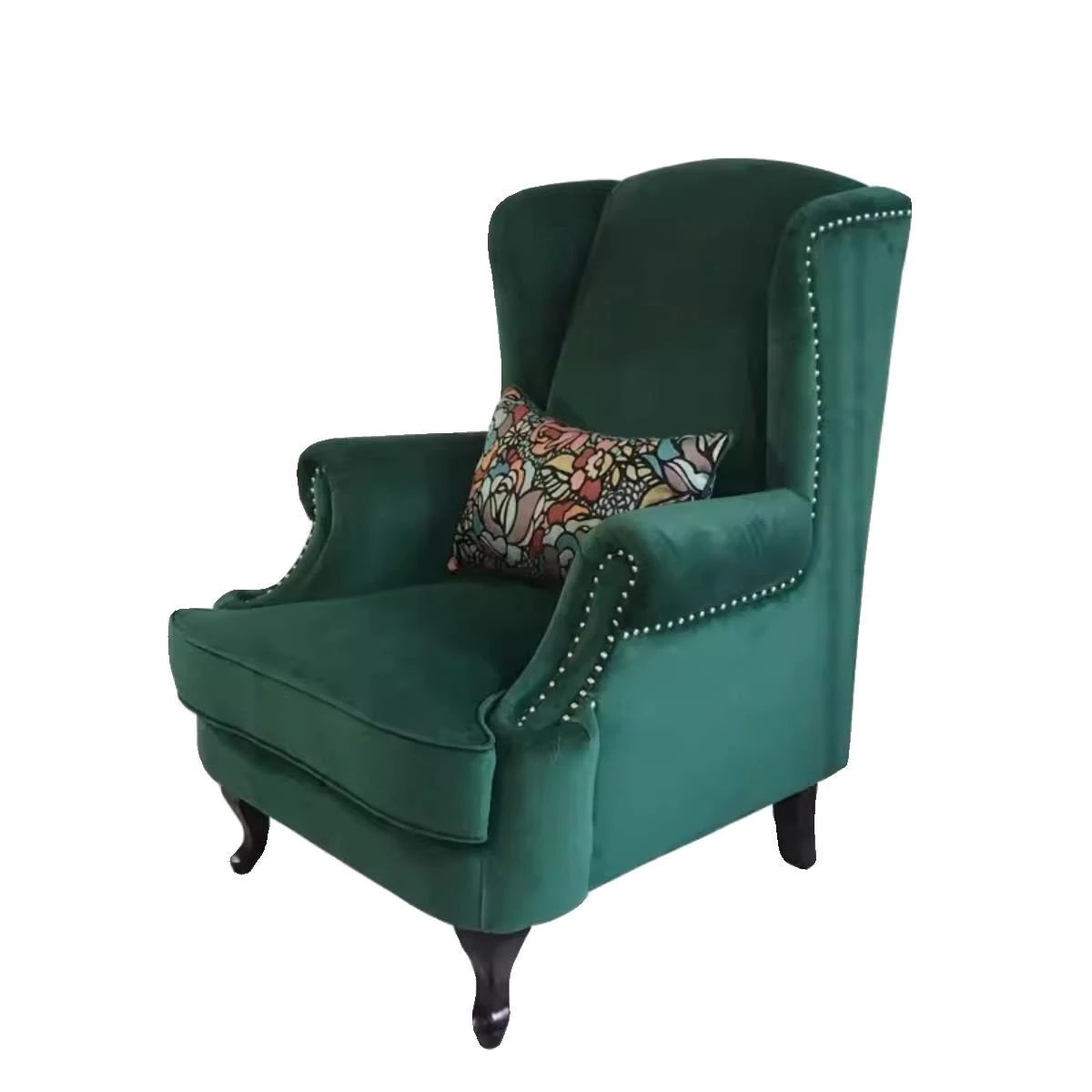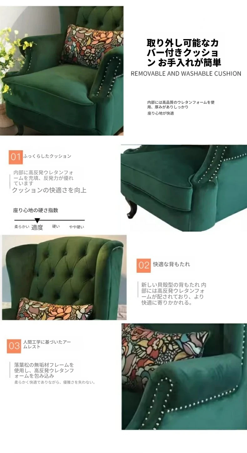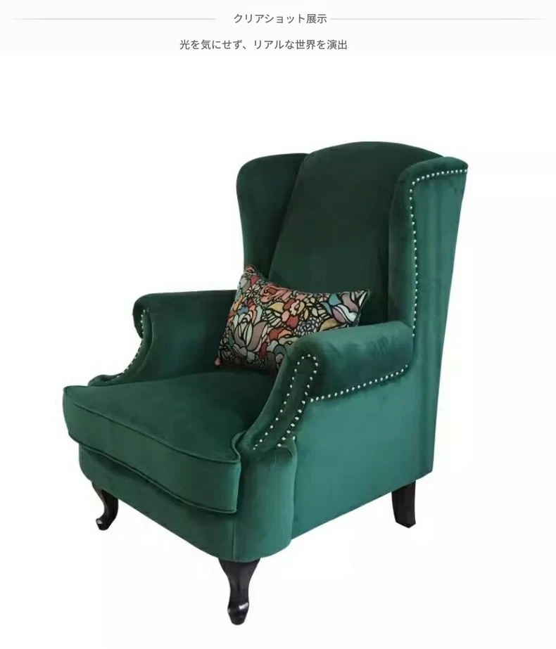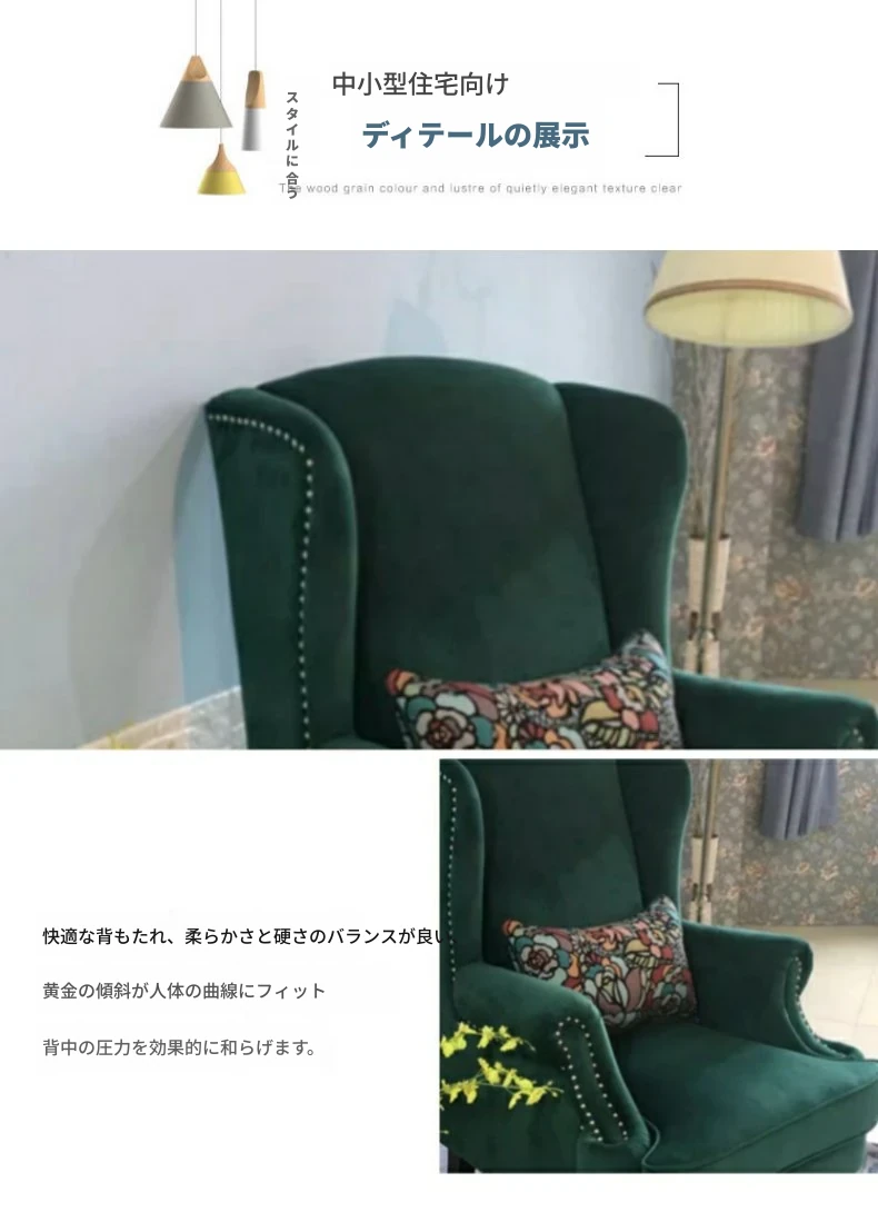 虎の椅子 アメリカンスタイル 一人掛けソファ コンパクトサイズ リビングルームにぴったり! エレガントなモスグリーンのベルベット生地使用 高背デザインで快適な座り心地を実現した寝室にも最適なソファチェアです。