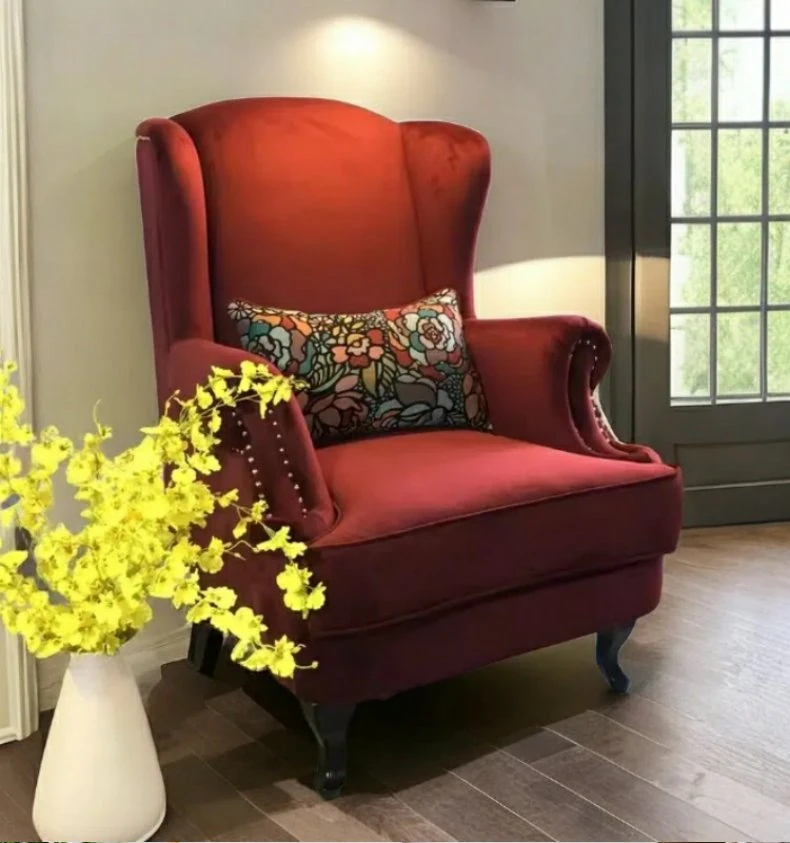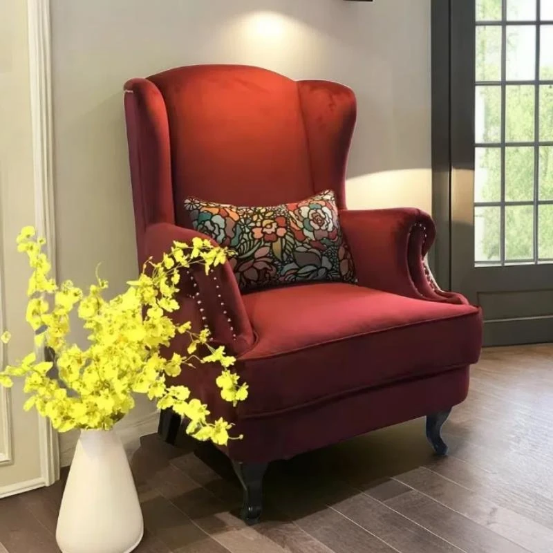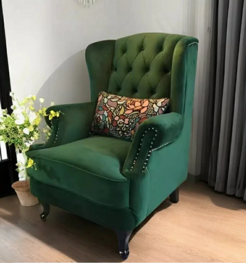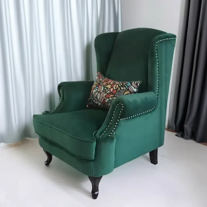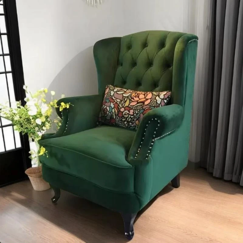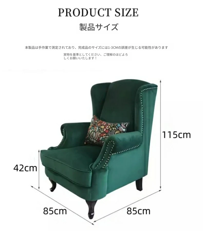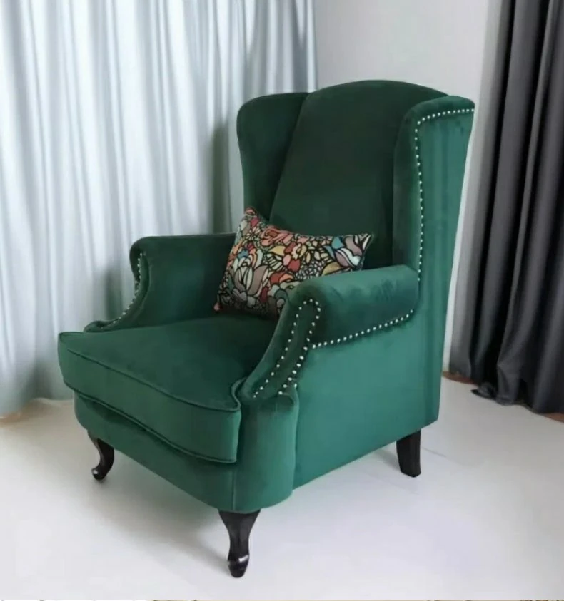 虎の椅子 アメリカンスタイル 一人掛けソファ コンパクトサイズ リビングルームにぴったり! エレガントなモスグリーンのベルベット生地使用 高背デザインで快適な座り心地を実現した寝室にも最適なソファチェアです。