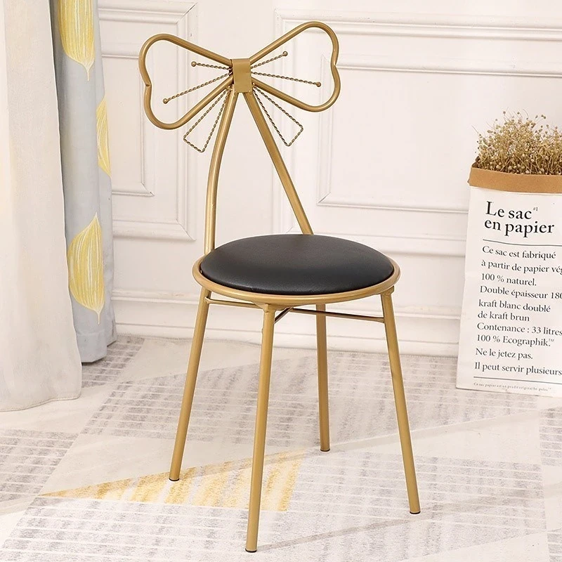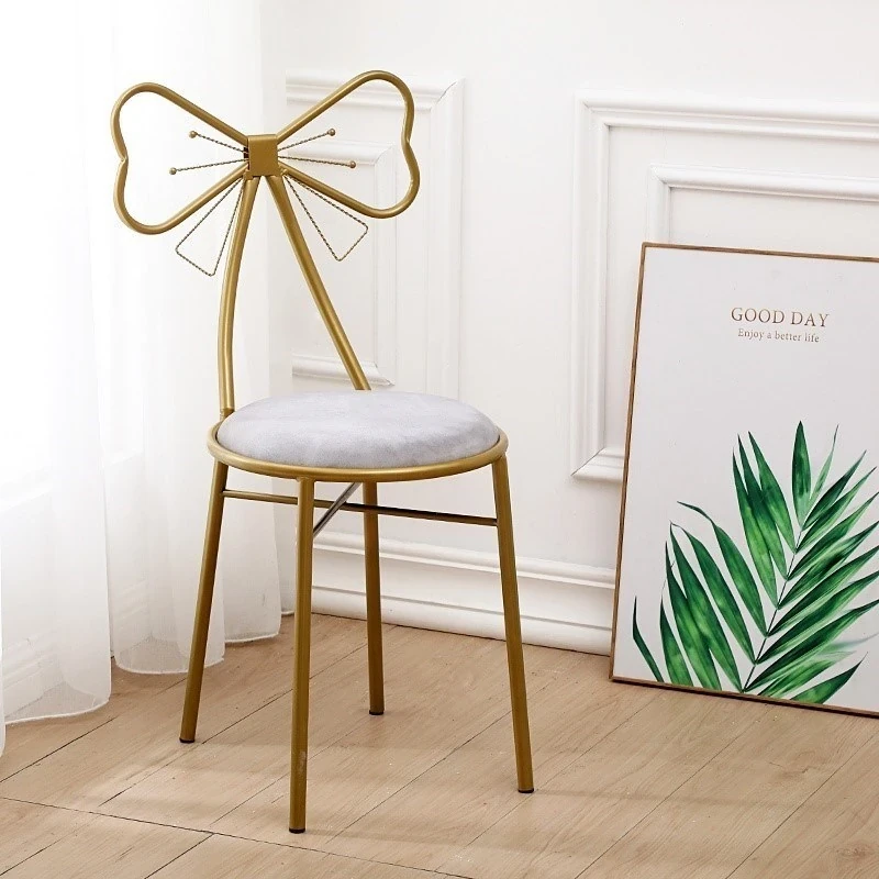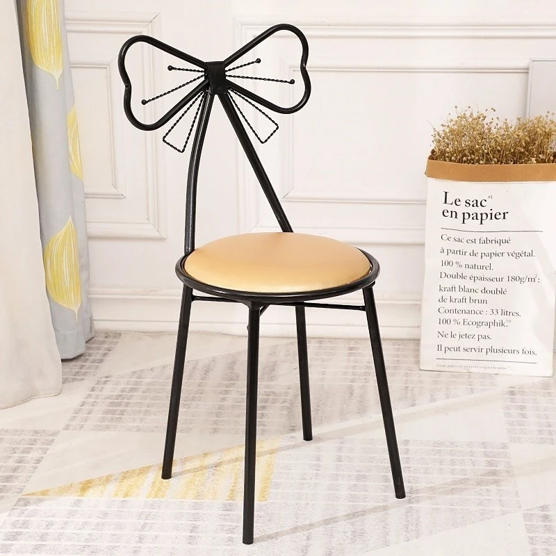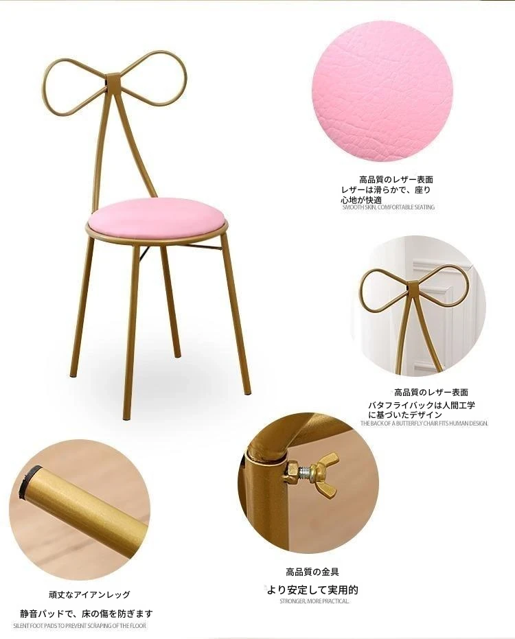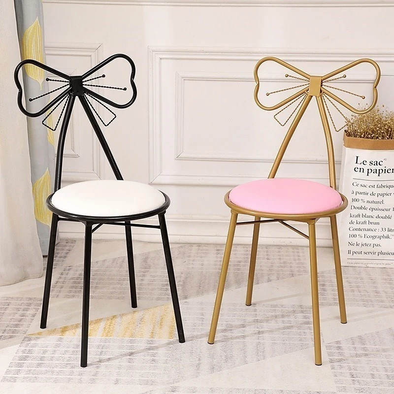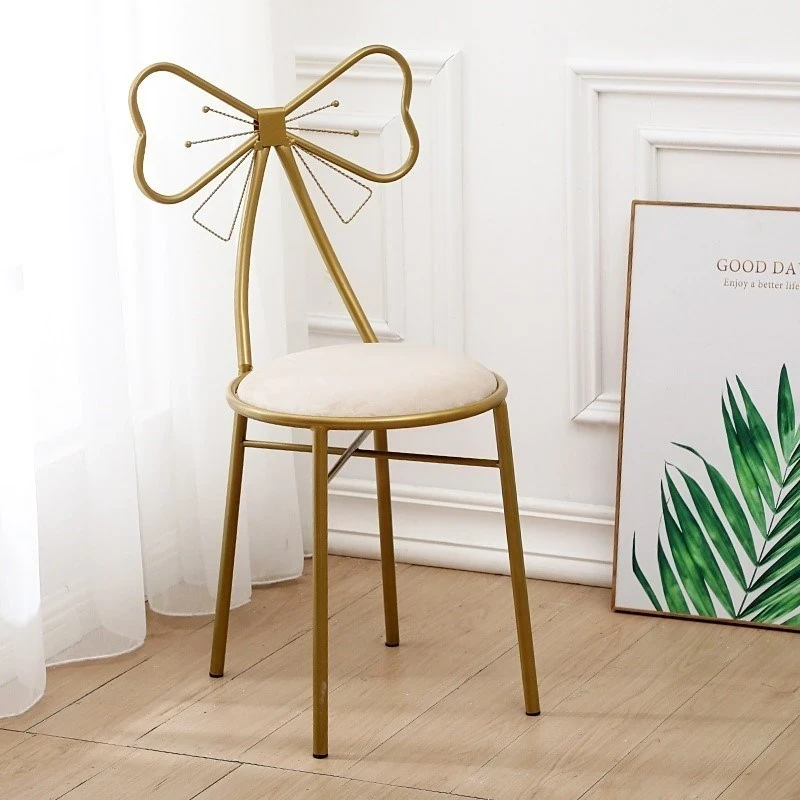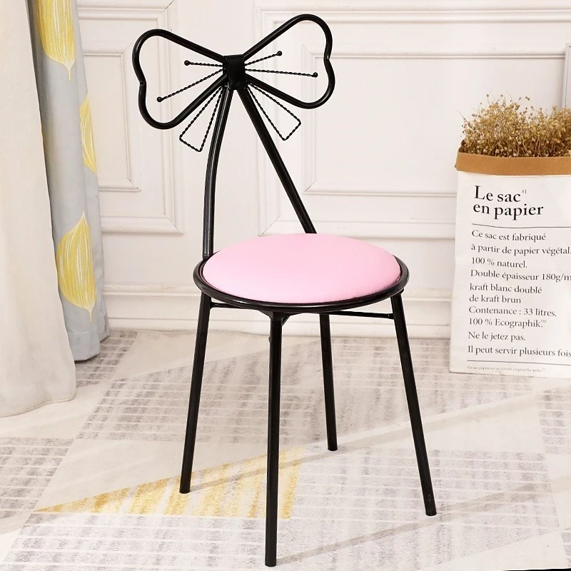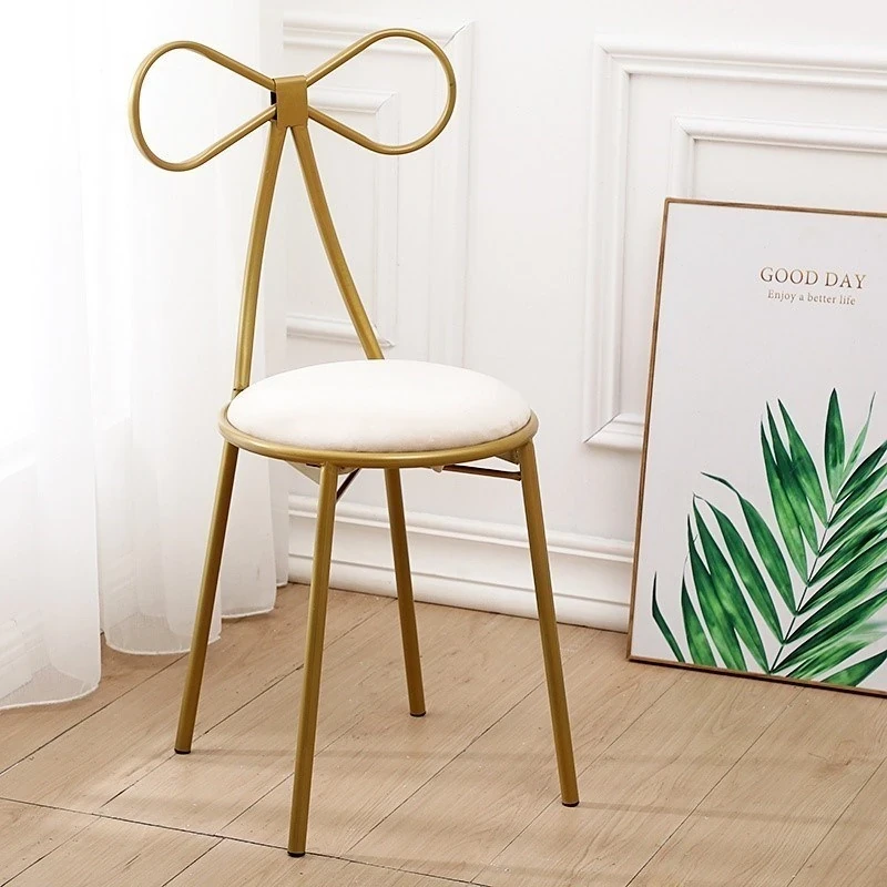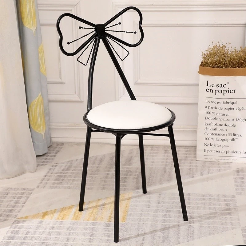 インスタ映え!北欧スタイルのアイアンメイクアップチェア - 可愛い少女のためのトレンディな化粧椅子、快適な背もたれ付きで寝室にぴったり!
