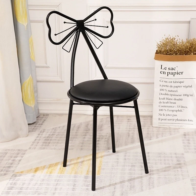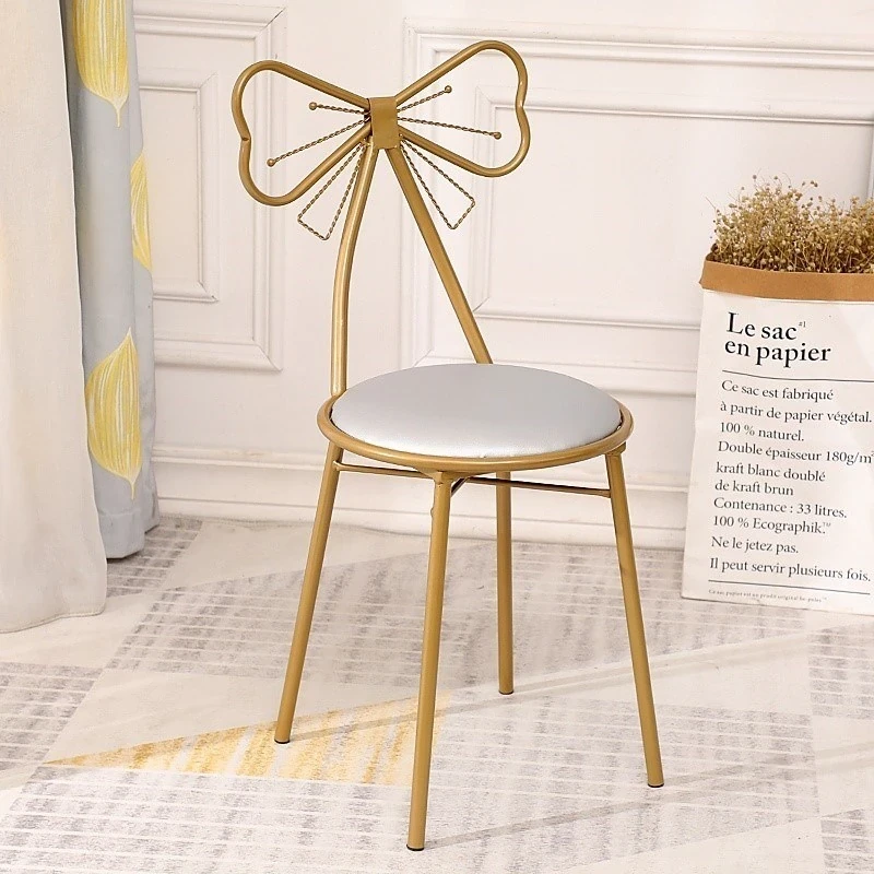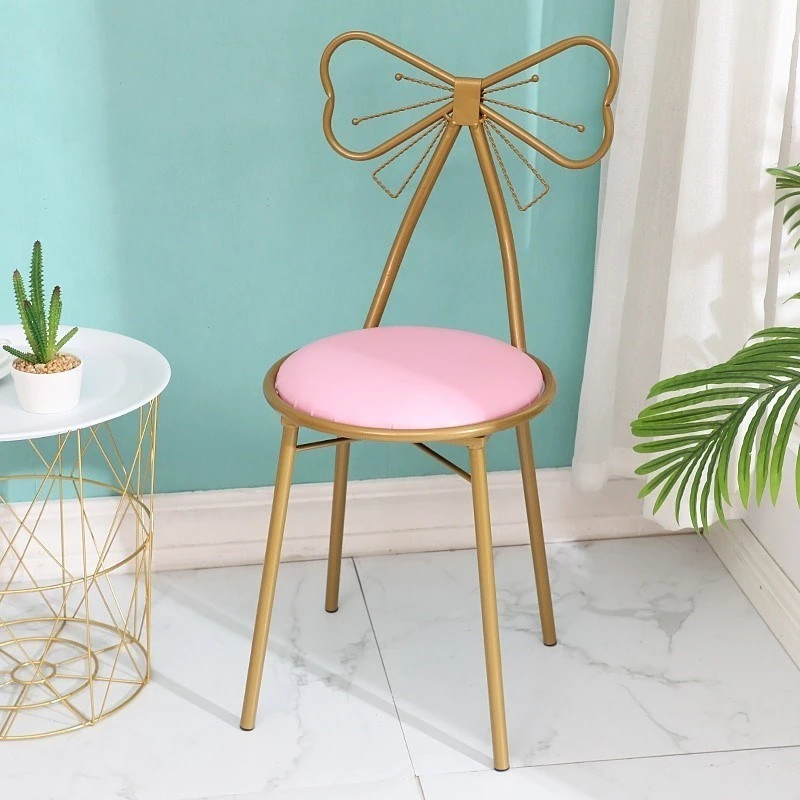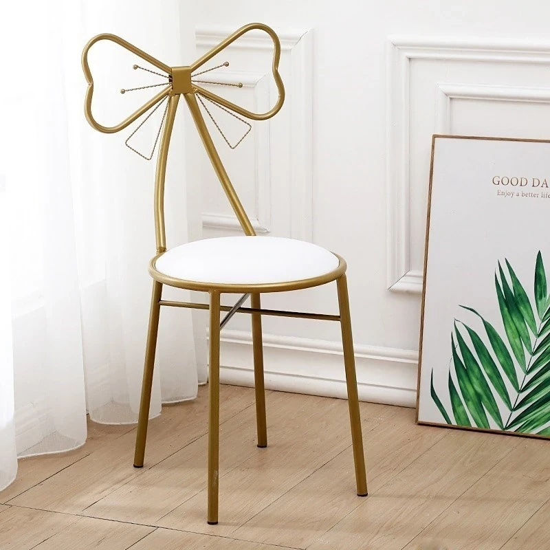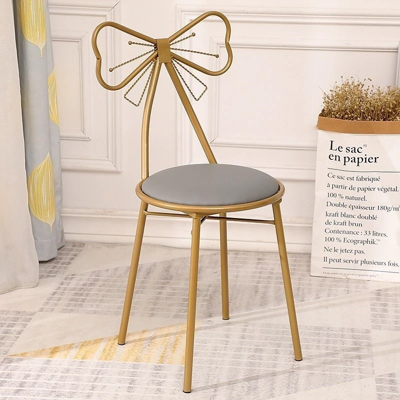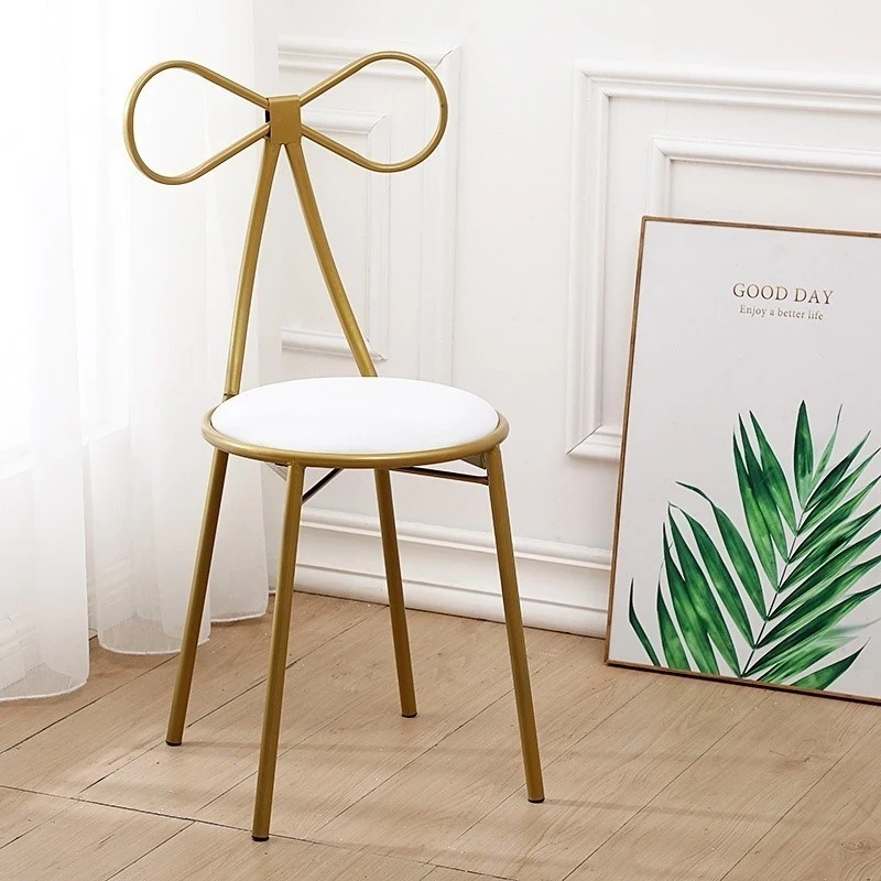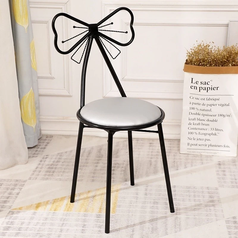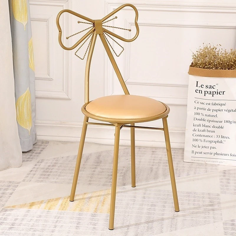 インスタ映え!北欧スタイルのアイアンメイクアップチェア - 可愛い少女のためのトレンディな化粧椅子、快適な背もたれ付きで寝室にぴったり!