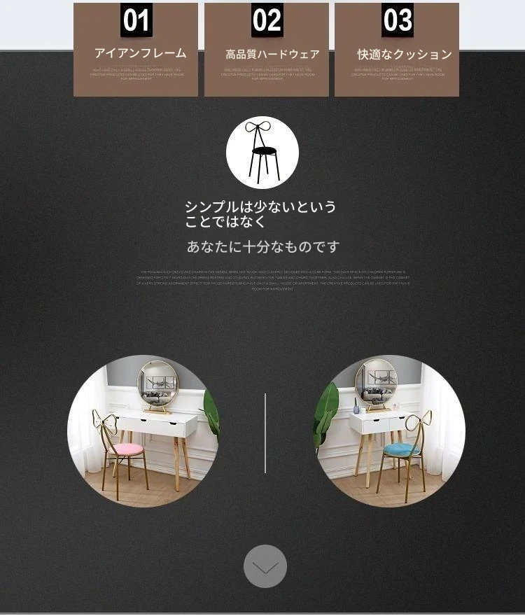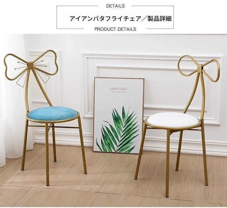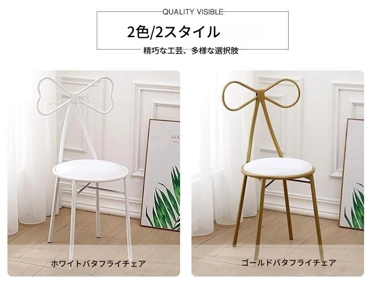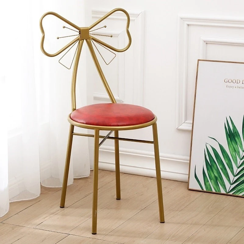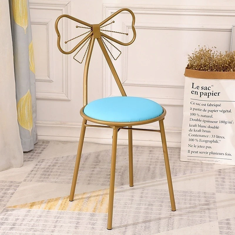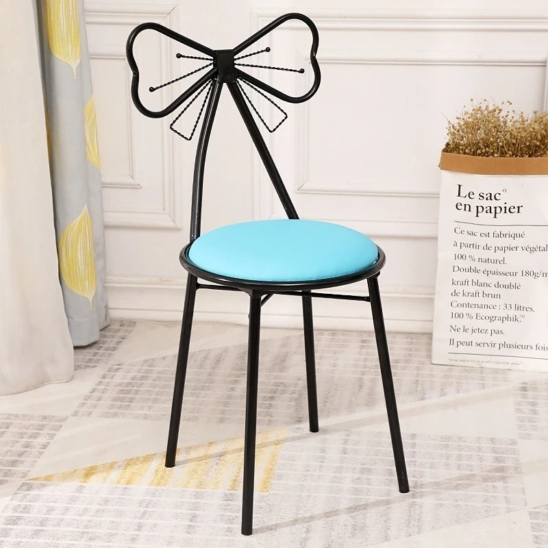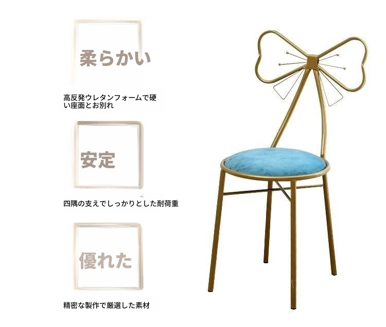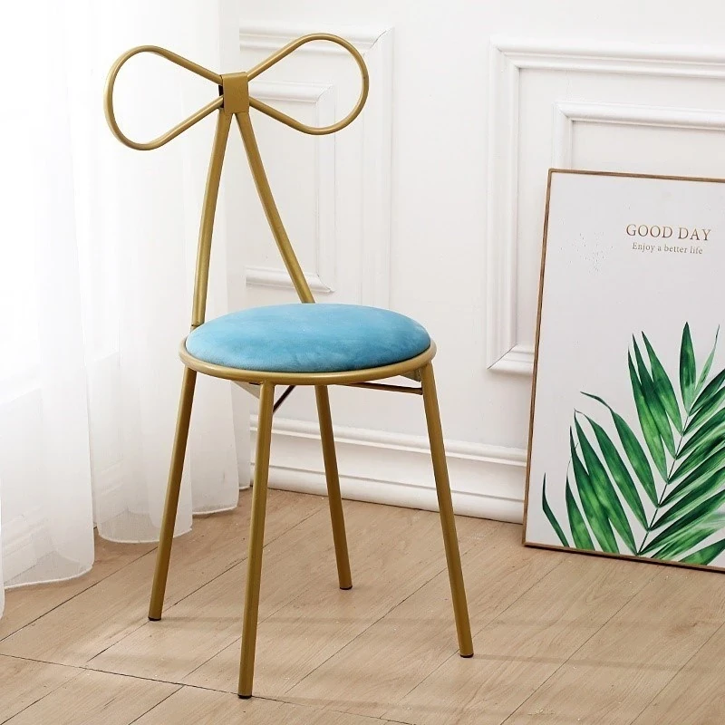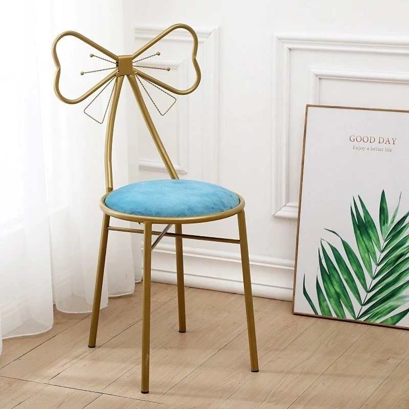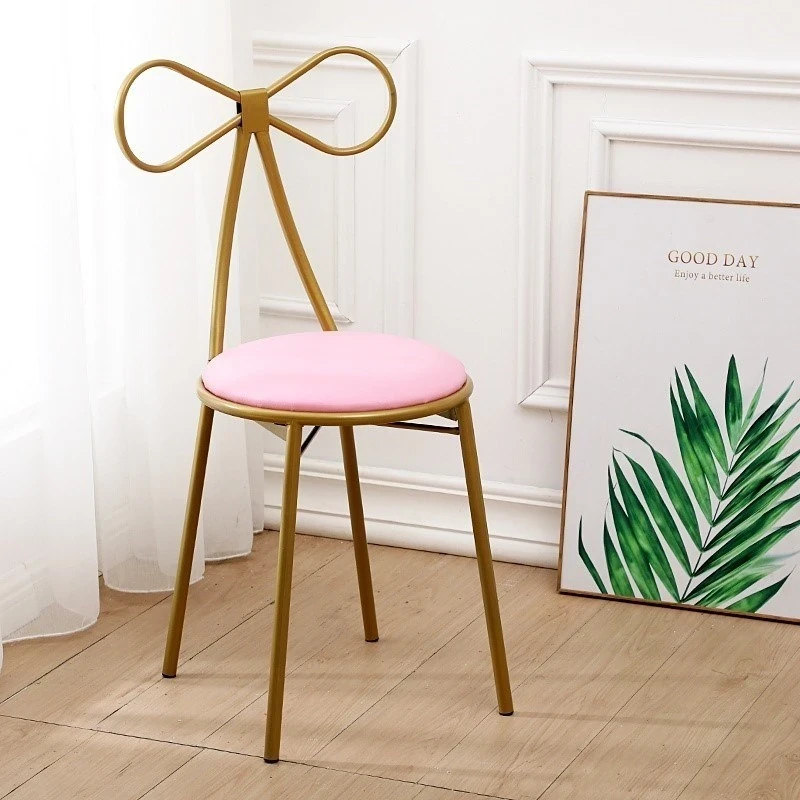 インスタ映え!北欧スタイルのアイアンメイクアップチェア - 可愛い少女のためのトレンディな化粧椅子、快適な背もたれ付きで寝室にぴったり!