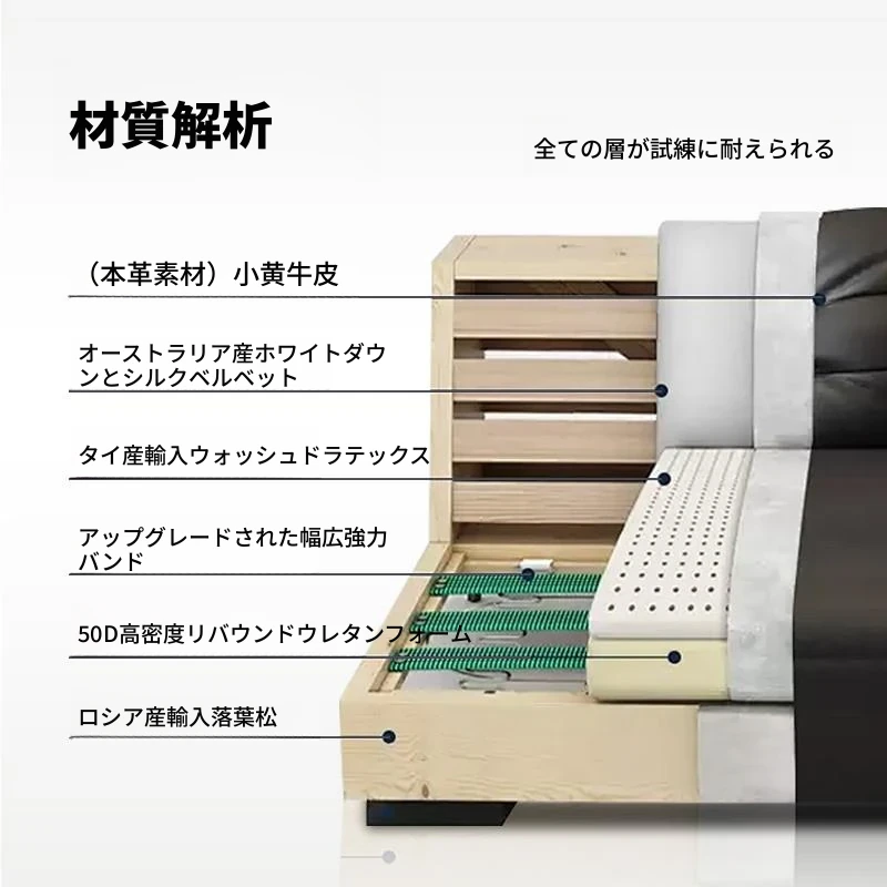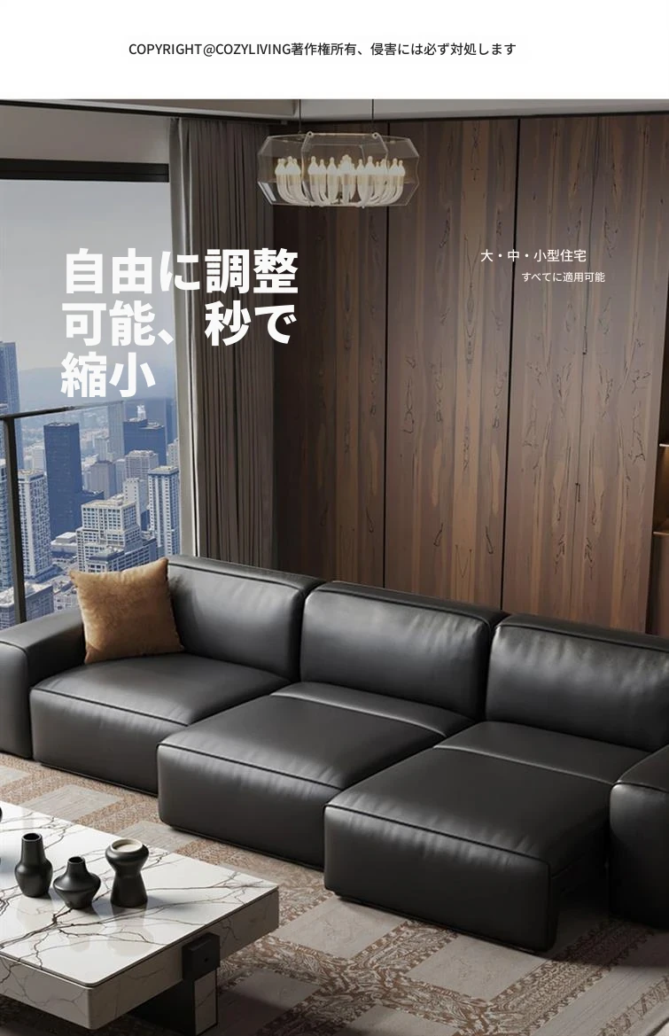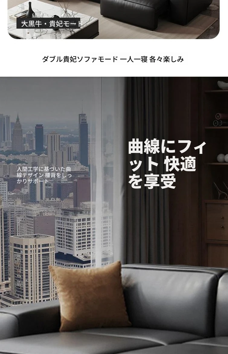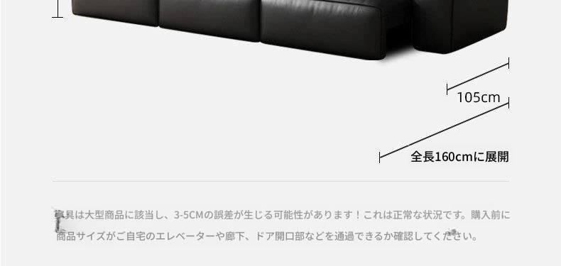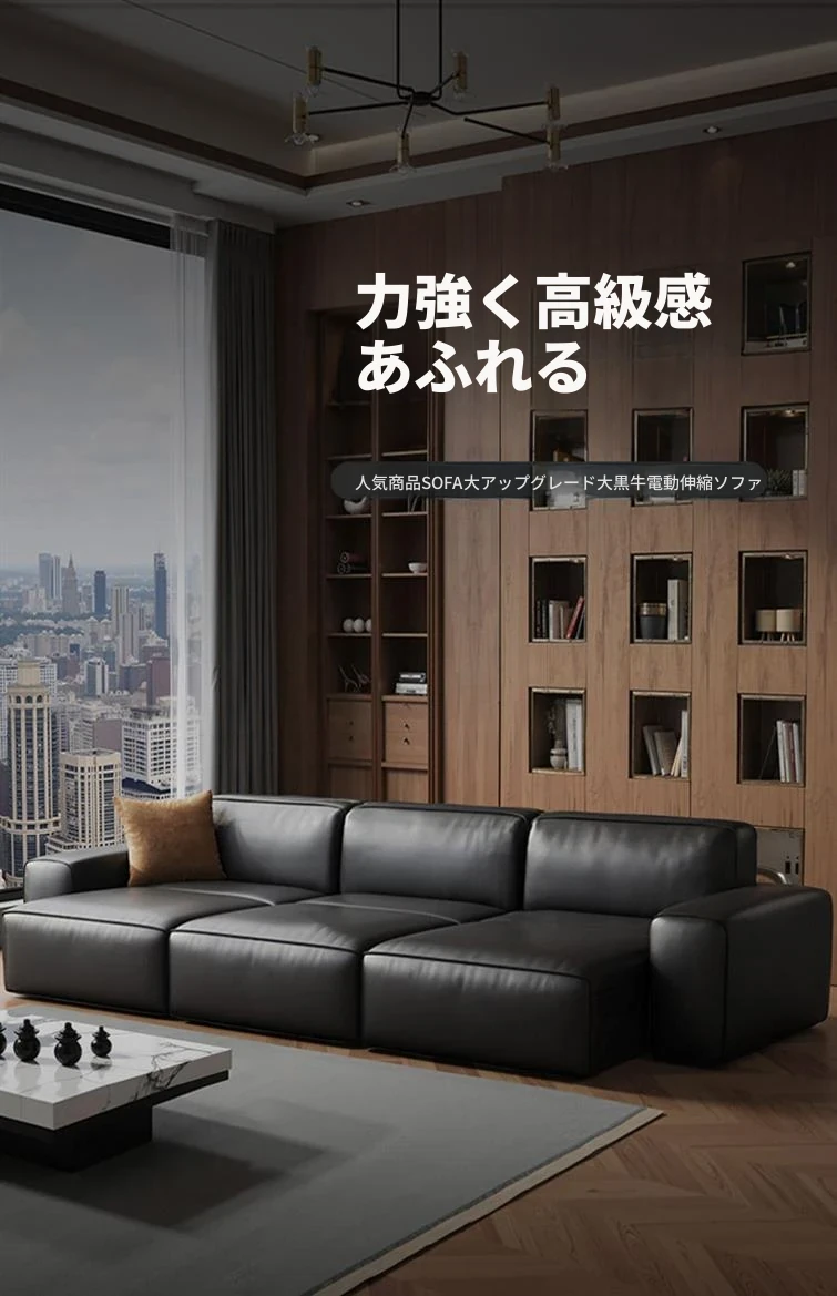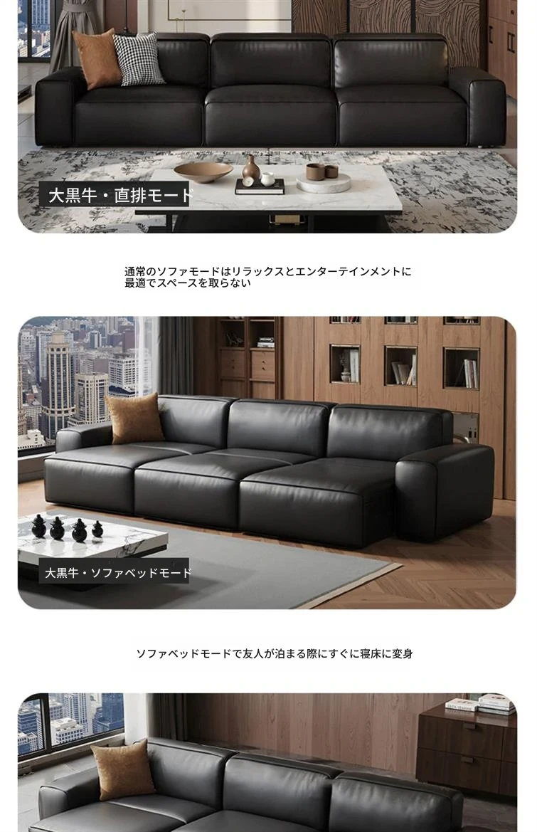 大黒牛イタリアンミニマル多機能電動ソファ - 本革製、リビングに最適!調整可能な伸縮ベッドに変身、狭いお部屋にもぴったり!快適さとスタイルを兼ね備えた一品。