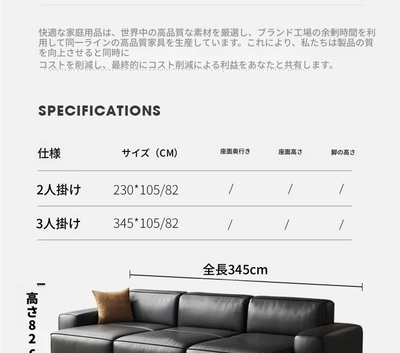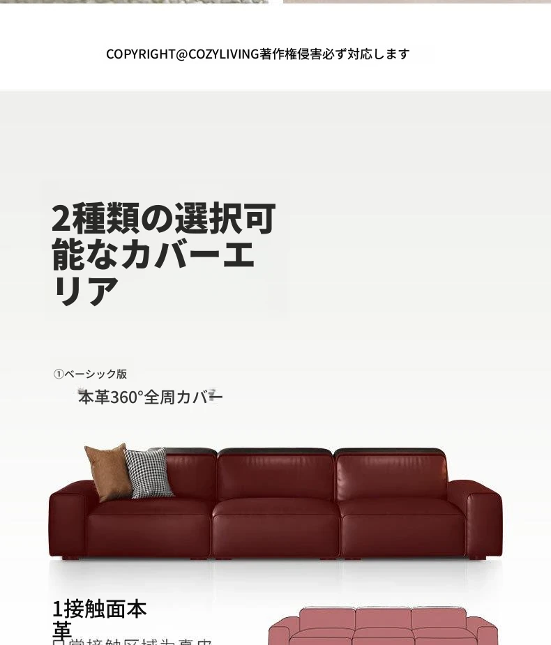 【厚手の本革全カバー】2.5メートル二人掛け【無線リモコン電動】