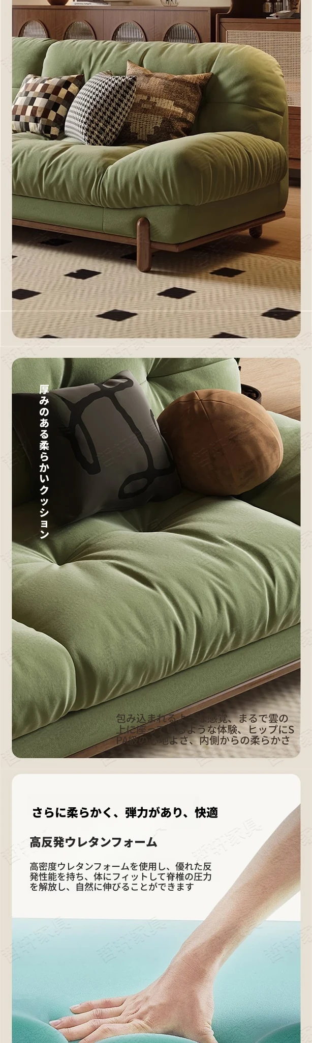 哲轩フレンチスタイルの無垢材ソファ - リビングにぴったりのコンパクトサイズ、Cカップデザインでクリーミークラウドの北欧レトロな布張り、エレガントなダークグリーン。おしゃれで機能的な空間を演出します!